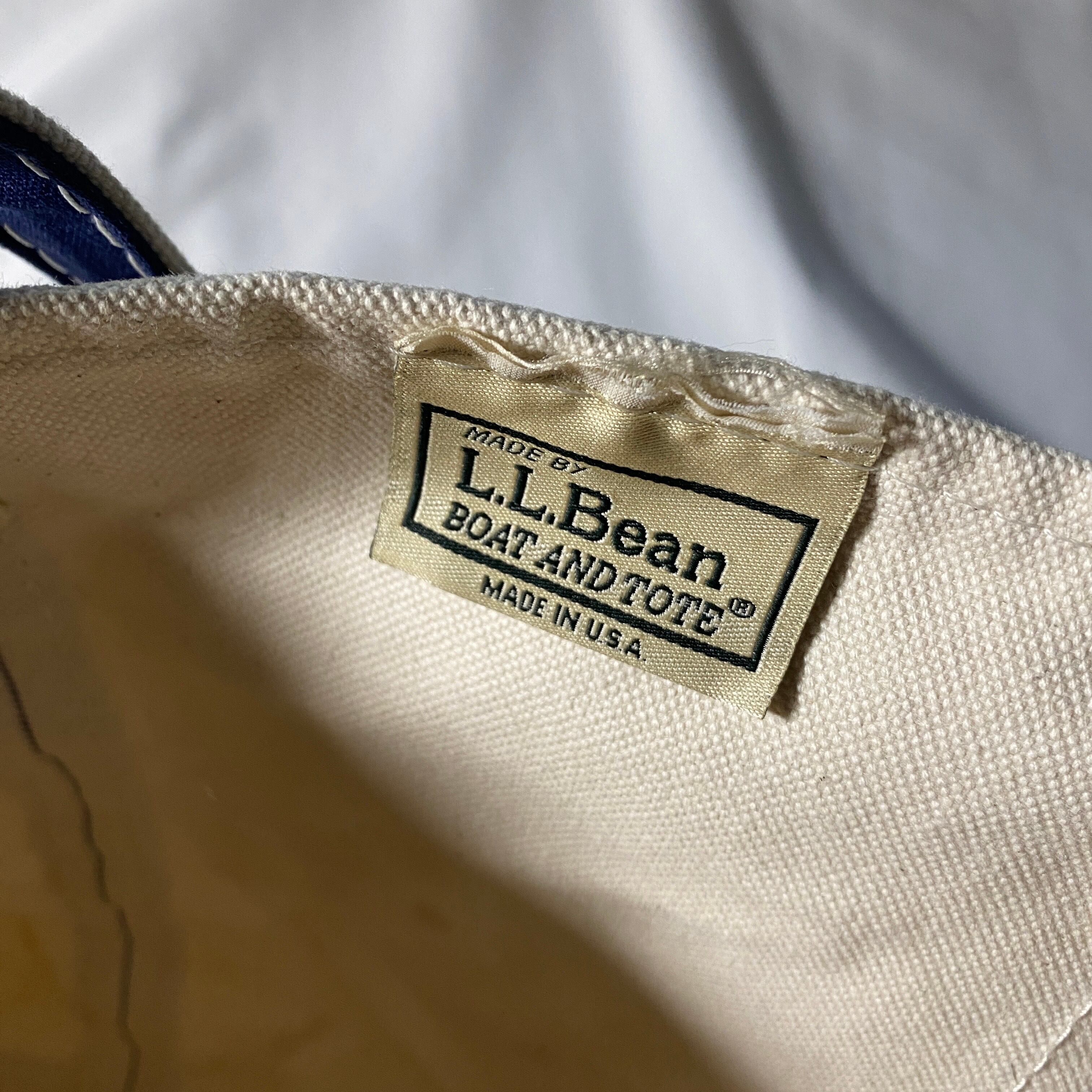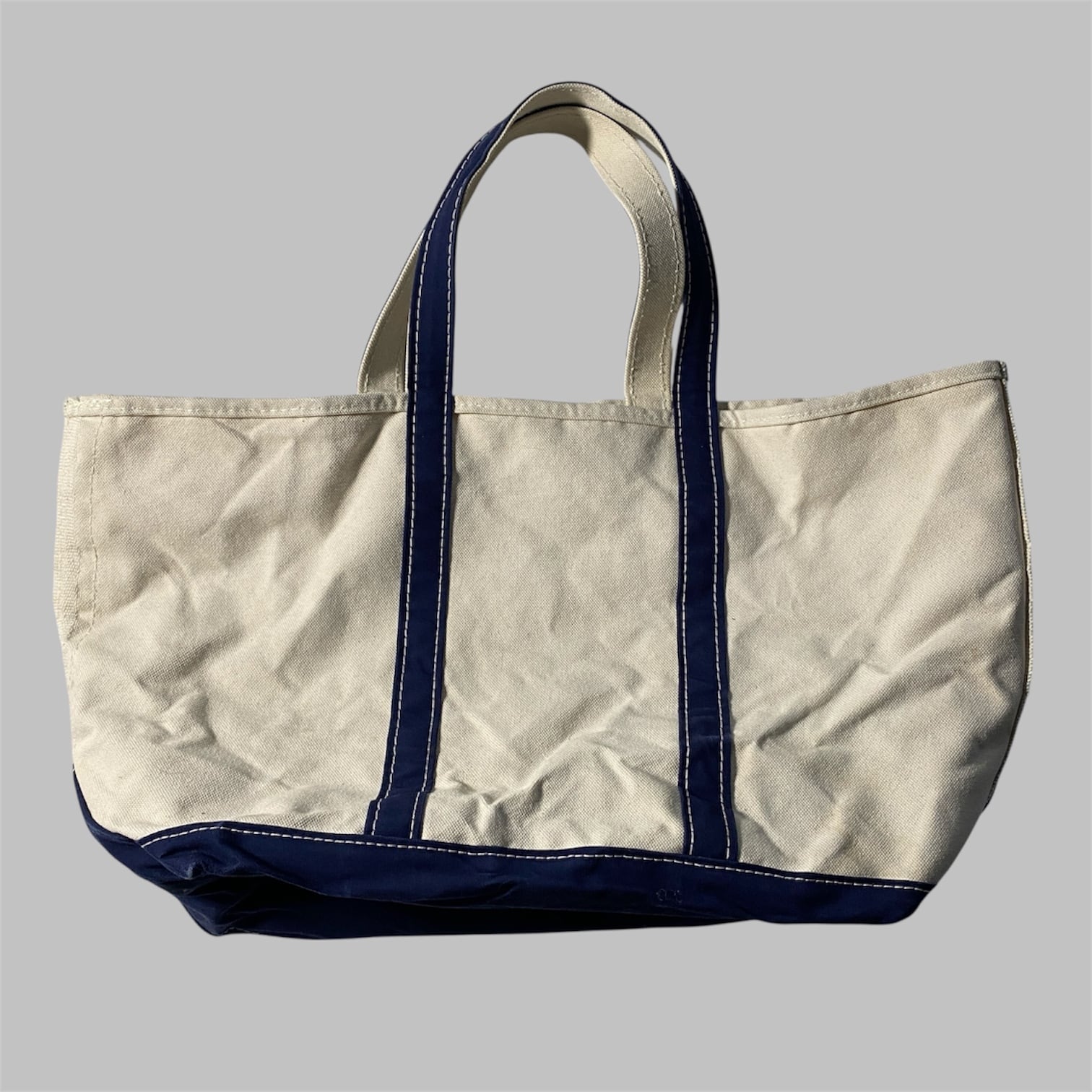 L.L.Beanの名作ボートアンドトート、MADE IN U.S.A.タグ付きの90年代以降の個体。氷を運ぶために生まれたという無骨なルーツを持つこのバッグは、24オンスのキャンバスと補強されたボトムが象徴的。こちらはネイビートリムにイニシャル刺繍入りで、リアルな使用感がむしろ雰囲気を加速させています。ガシガシ使ってさらに味を足すも良し、デニムに白シャツで王道アメカジを貫くも良し。“道具”として完成されたトートです。