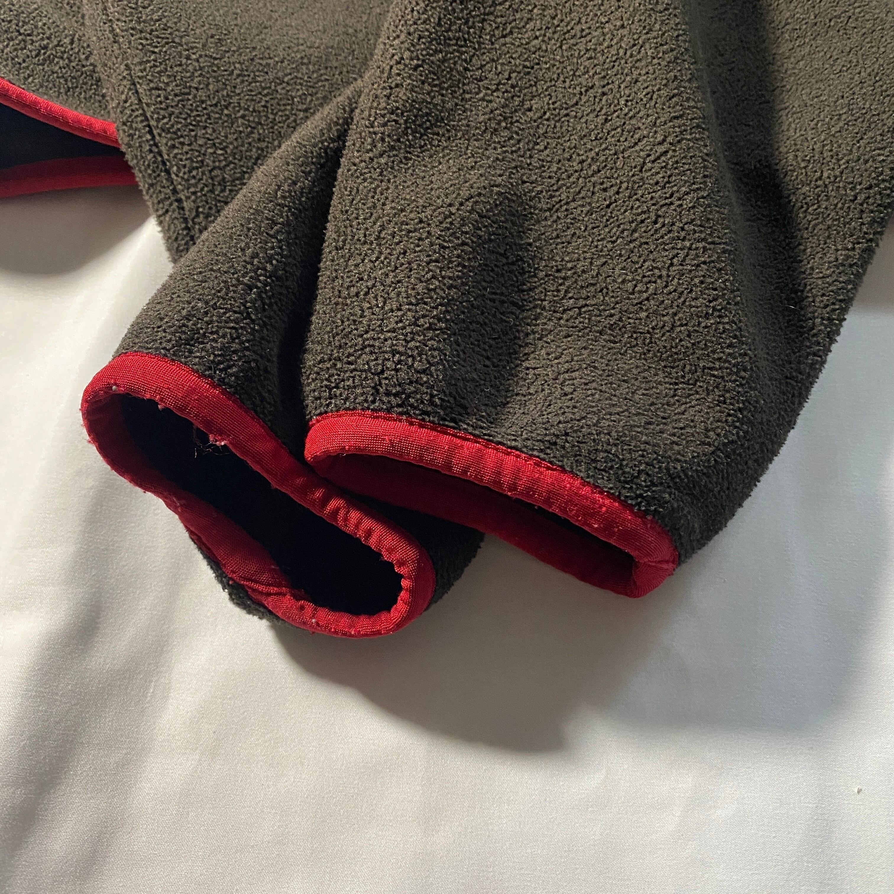 2011年製のPatagoniaシンチラスナップT。深みのあるブラウンボディにレッドのポケットフラップとパイピングが効いた、アウトドアらしいコントラストが魅力の配色です。1985年の登場以来、スナップTはパタゴニアのアイコンとして進化を続ける名作モデル。軽量かつ高い保温性を誇るシンチラフリースは街着としても優秀で、デニムやブラックパンツとの相性も抜群。小さな焦げ跡も“焚き火の記憶”のようなリアルなストーリーとして楽しめる一枚。機能性とカルチャーを両立した、長く付き合えるクラシックです。