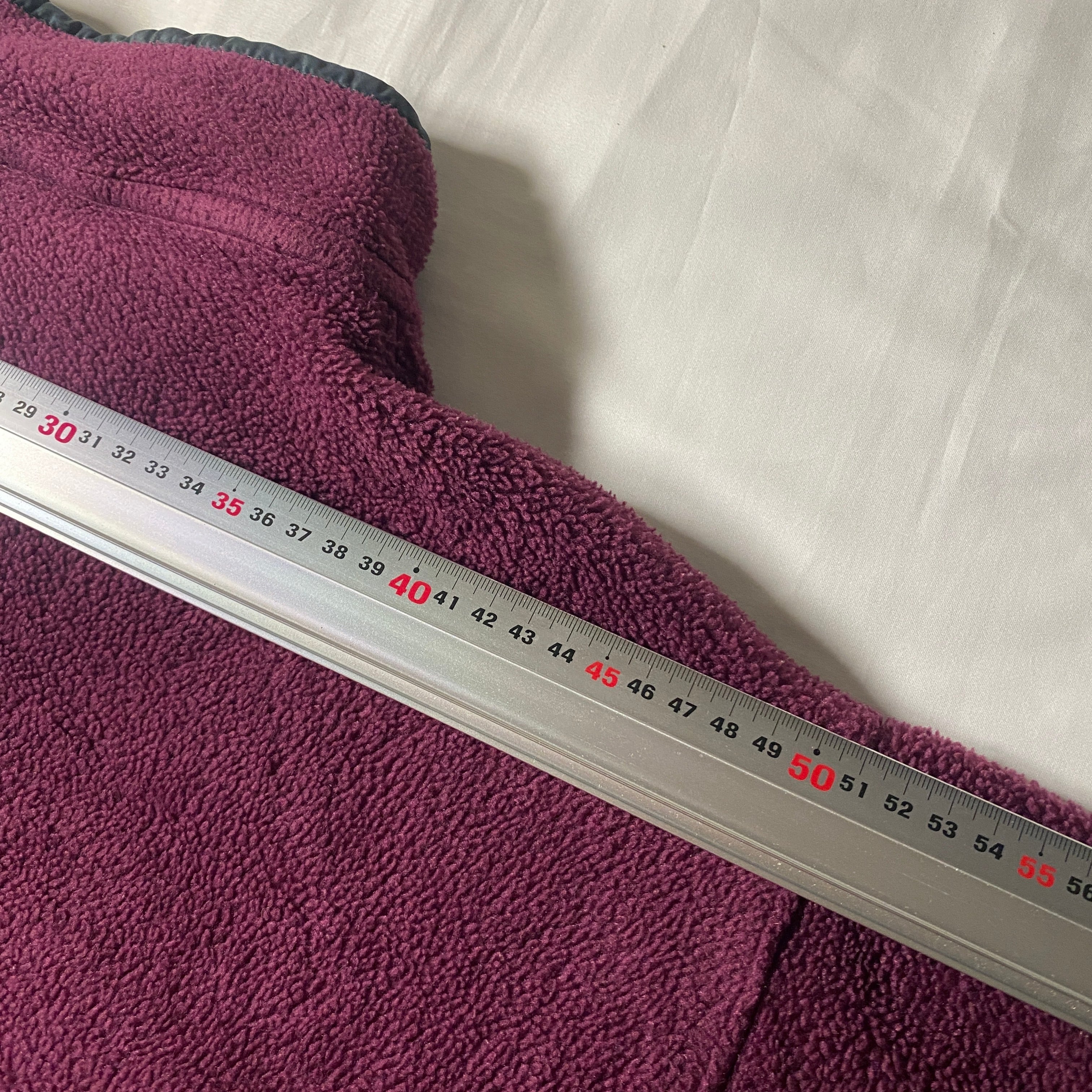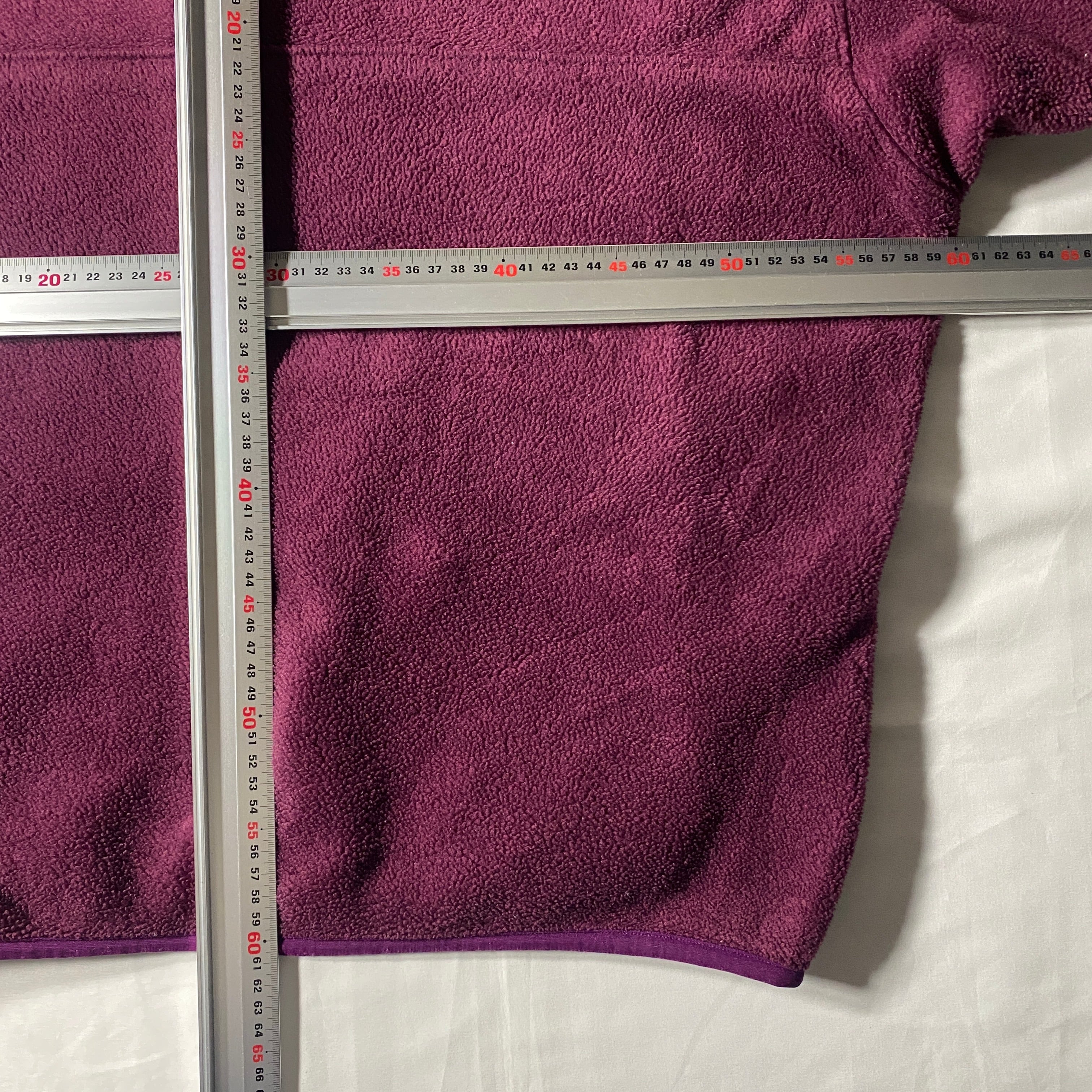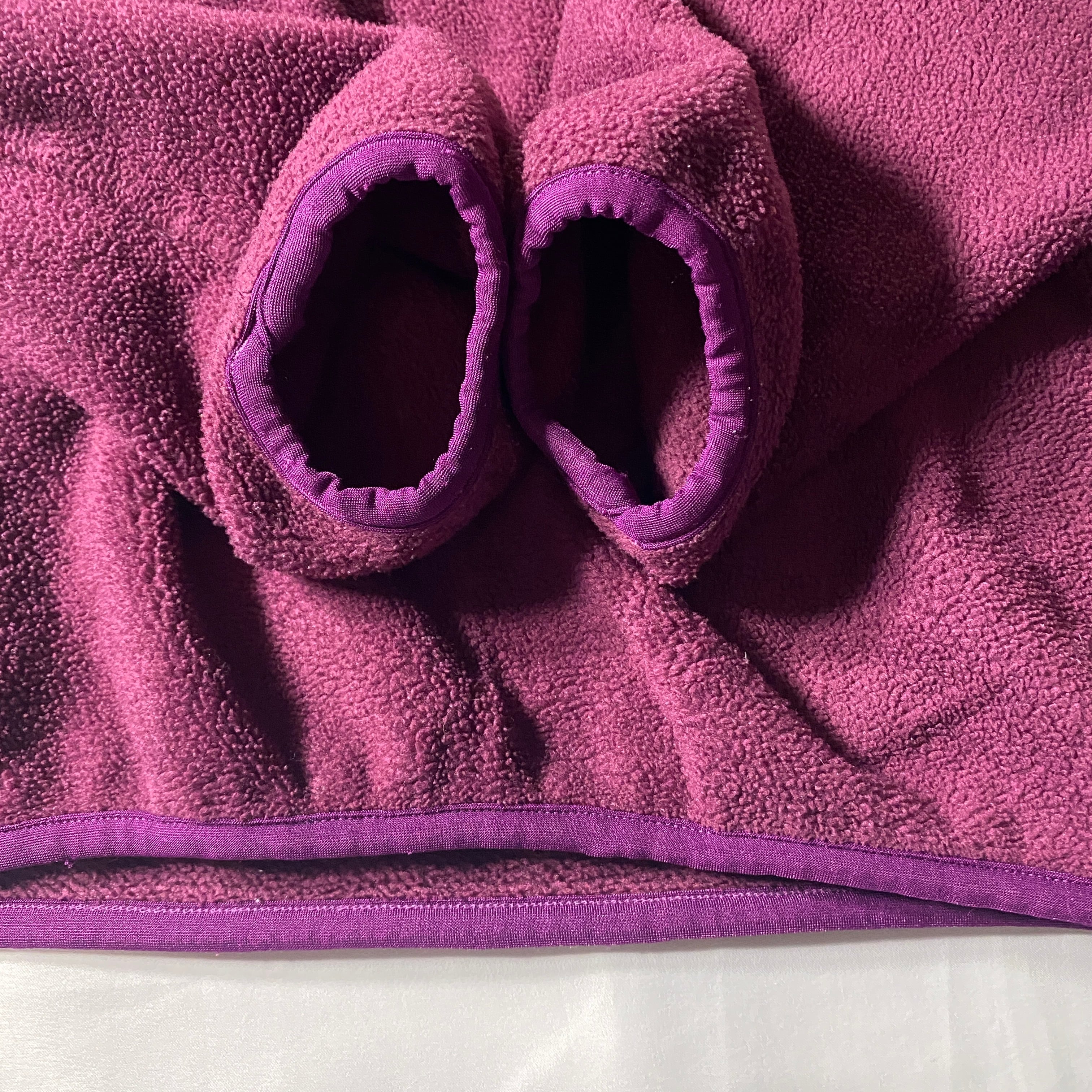 1994年製のパタゴニア定番フリース、シンチラスナップT。90年代らしい深みのあるパープルカラーは当時のアウトドアカタログでも人気の高い配色で、グレーのナイロントリムが程よいアクセントになっています。パタゴニア独自のポリエステルフリース「Synchilla」は軽量で保温性に優れ、街でも山でも活躍する万能素材。デニムやカーゴパンツと合わせれば王道アメカジ、ブラックパンツで都会的にも着こなせる一枚。90年代アウトドアの空気をそのまま纏えるヴィンテージシンチラです。