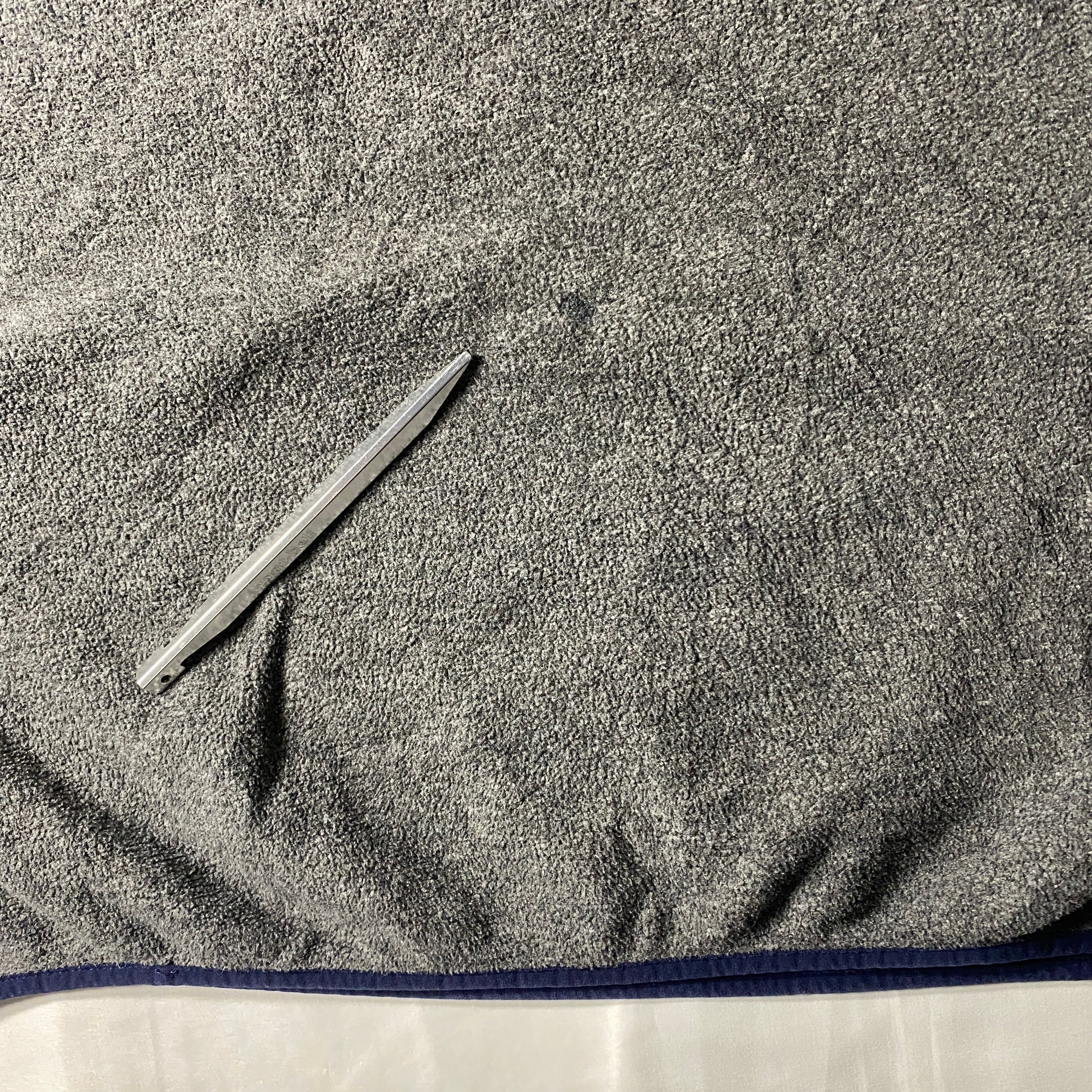 パタゴニア定番フリースの軽量モデル、ライトウェイトシンチラスナップT。クラシックなヘザーグレーボディにネイビーのトリムとポケットが映える落ち着いたアウトドア配色で、タウンユースにも馴染む万能カラーです。ライトウェイトシンチラは通常モデルより薄手で動きやすく、クライミングやハイクのミッドレイヤーとして開発されたシリーズ。本個体はフィールドで使い込まれた補強リペアが随所に残り、まるで長年山を歩いたギアのようなストーリーを感じさせる一枚。大きめ2XLサイズのゆったりしたシルエットも現代的なバランスです。