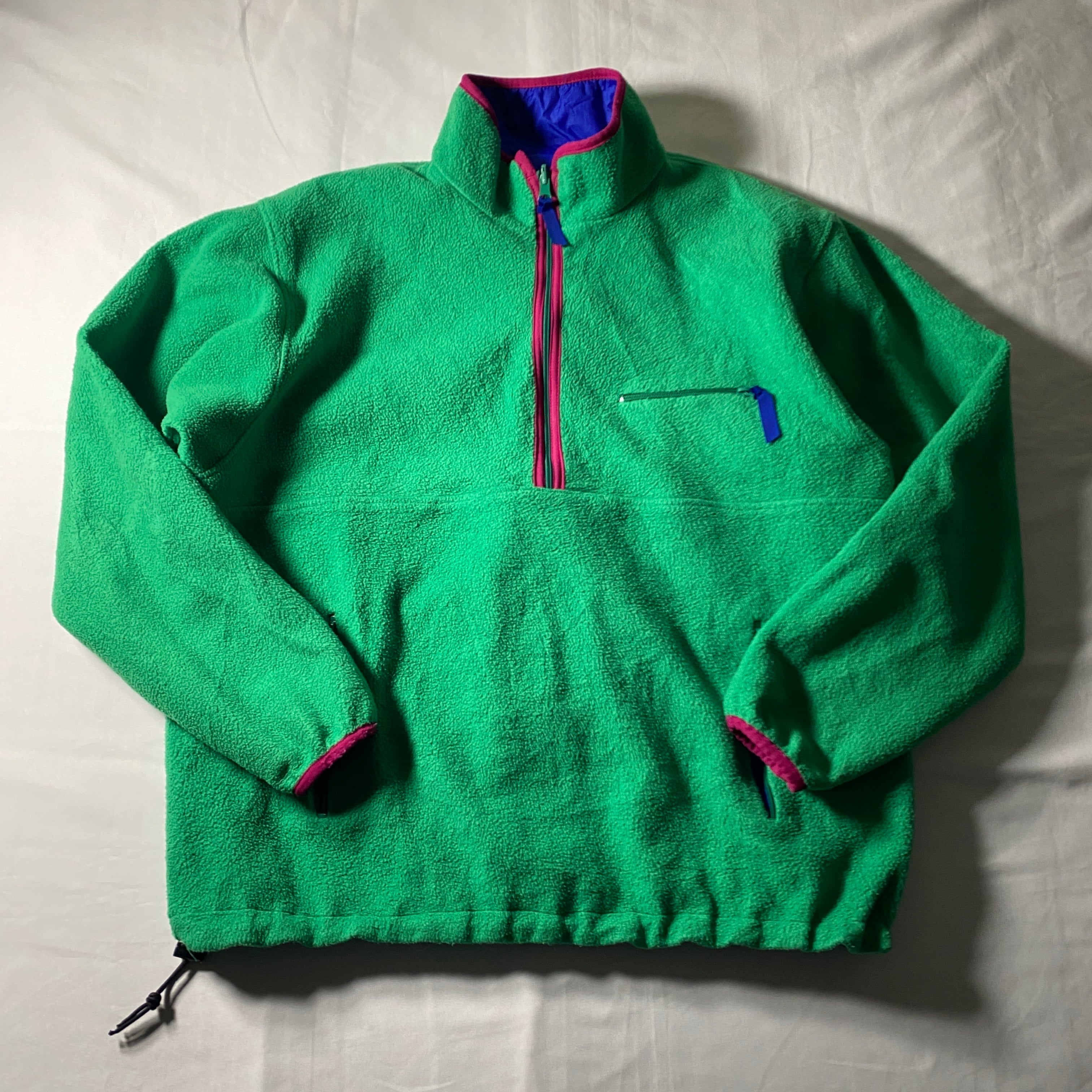 1998年製Patagoniaの名作グリセードジャケット。ナイロンシェルとフリースを組み合わせた完全リバーシブル仕様で、アウトドアとタウンユースの両方を楽しめる90年代パタゴニアの代表的モデル。ブルーのナイロンシェルにグリーンフリースという当時らしい大胆なカラーリングも魅力です。天候が荒れればシェル側、寒ければフリース側と状況に合わせて裏返すだけの合理的な設計。90sパタゴニアの遊び心と機能美をそのまま着られる“2着分楽しめるジャケット”です。