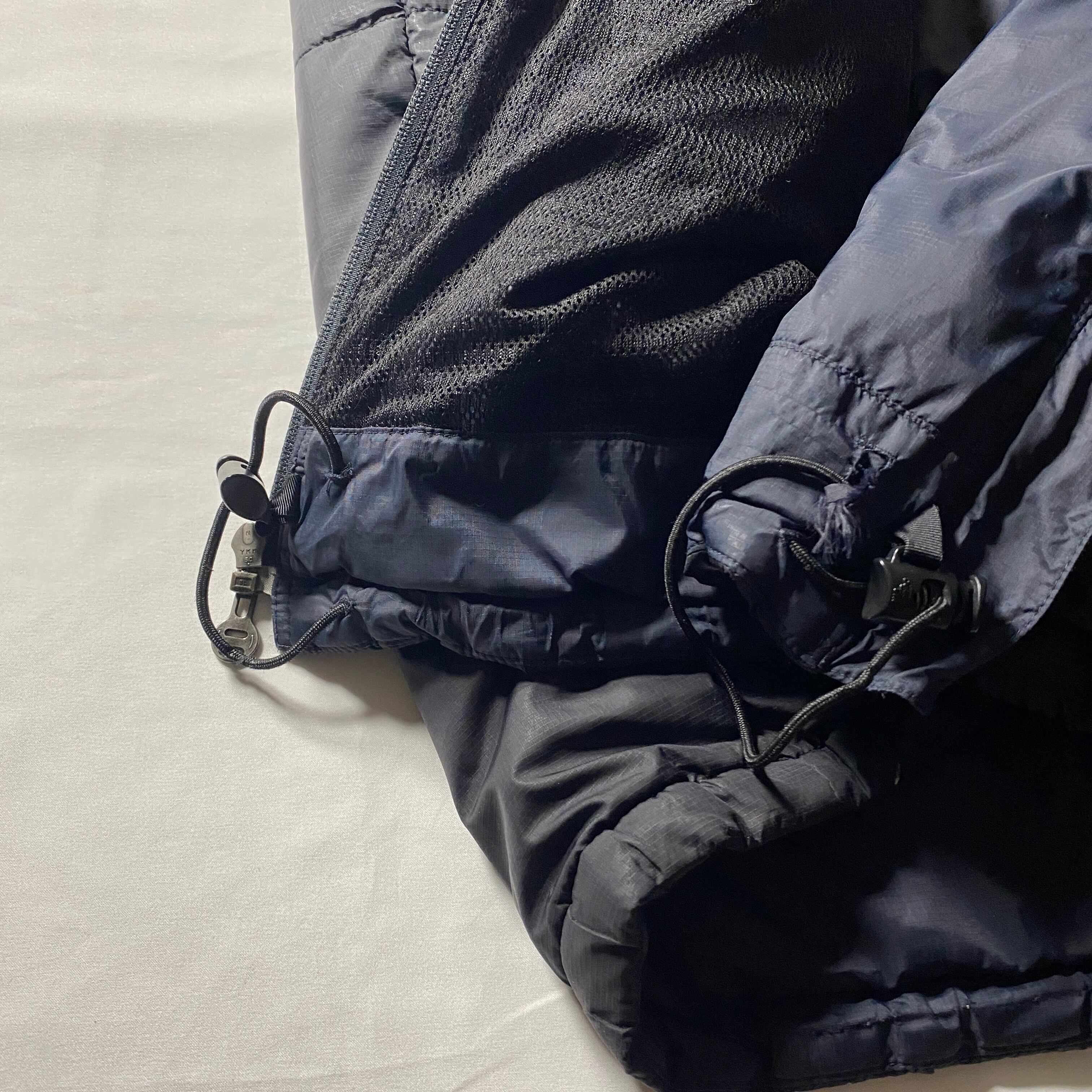2002年製Patagoniaのパフジャケット。軽量ナイロンシェルに化繊インサレーションを封入した名作アルパインジャケットで、濡れても保温力を維持する実用性の高さからクライマーやバックカントリー愛好家に支持されたモデルです。ブラックカラーはどんなスタイルにも合わせやすく、XLのゆったりとしたシルエットも魅力。リペア跡や使用感も含めて、まさに“山を越えてきた証”のようなヴィンテージらしい雰囲気を楽しめる一着です。