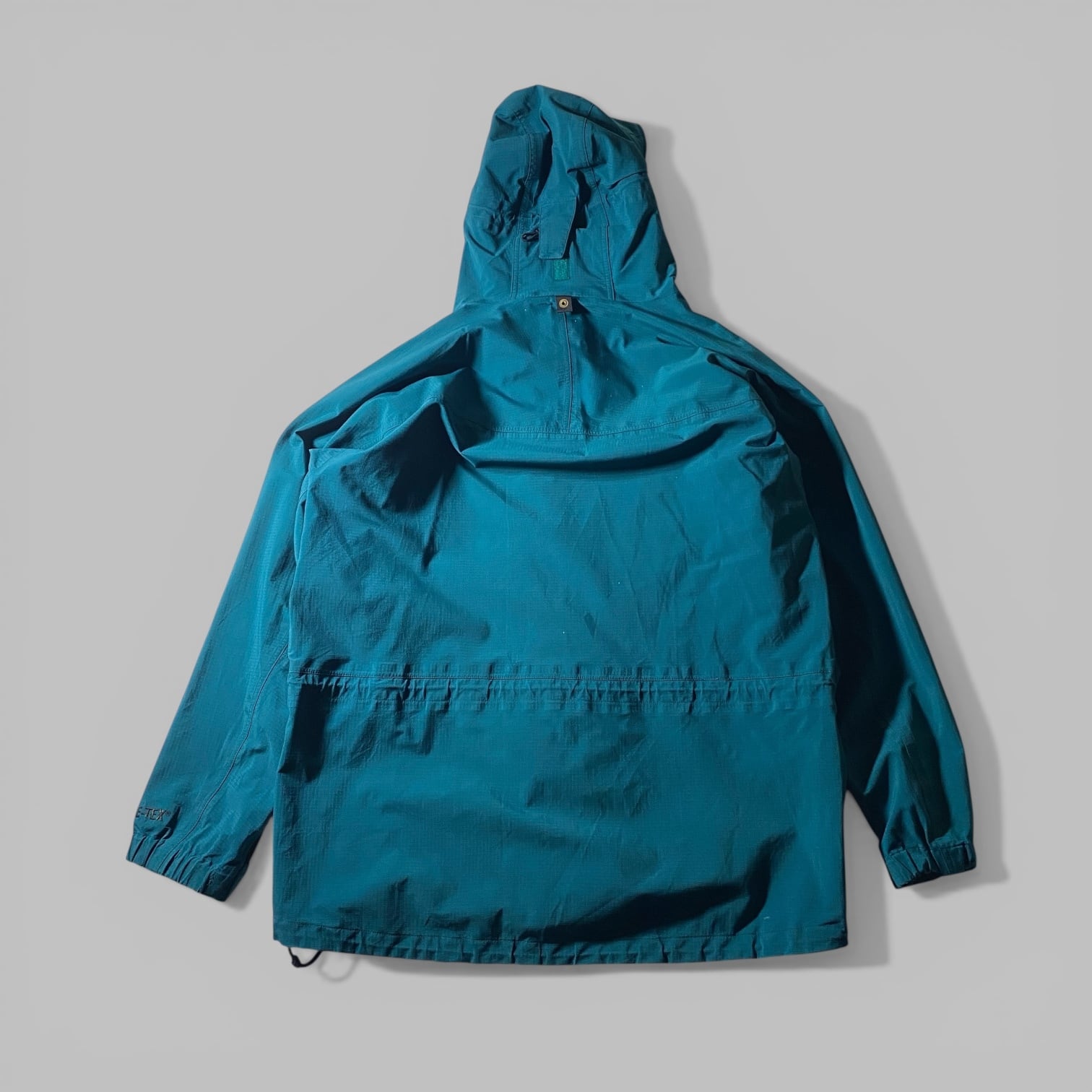 1912年創業のL.L.Beanが展開する高機能ライン「All Conditions」シリーズのGORE-TEXシェルジャケット。防水透湿素材GORE-TEXを採用し、雨風を防ぎながら内部の蒸れを逃がすアウトドア定番の構造。胸の立体ポケットやベンチレーション、内部メッシュポケットなど実用的なディテールも充実しています。90〜2000年代のアウトドアブランドらしいティールカラーも魅力で、山では頼れるギア、街では90sアウトドアスタイルを完成させる一着。機能美とクラシックなアウトドアデザインを両立した、L.L.Beanらしい実直なシェルです。