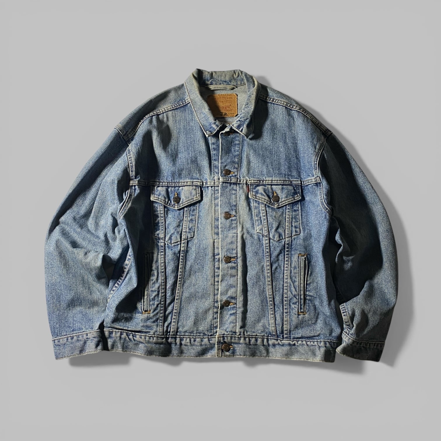 1980年代後半に登場したLevi’s 70507トラッカージャケット。クラシックなTypeⅢのデザインをベースに、ゆったりとした身幅とやや短めの丈で90年代らしいシルエットにアップデートされたモデルです。Tシャツやスウェットの上からラフに羽織れるサイズ感は当時のスケーターやストリートカルチャーとも相性抜群。長年着込まれたライトインディゴの色落ちは、デニムが歩んできた時間をそのまま刻んだヴィンテージの魅力を感じさせる一着です。
