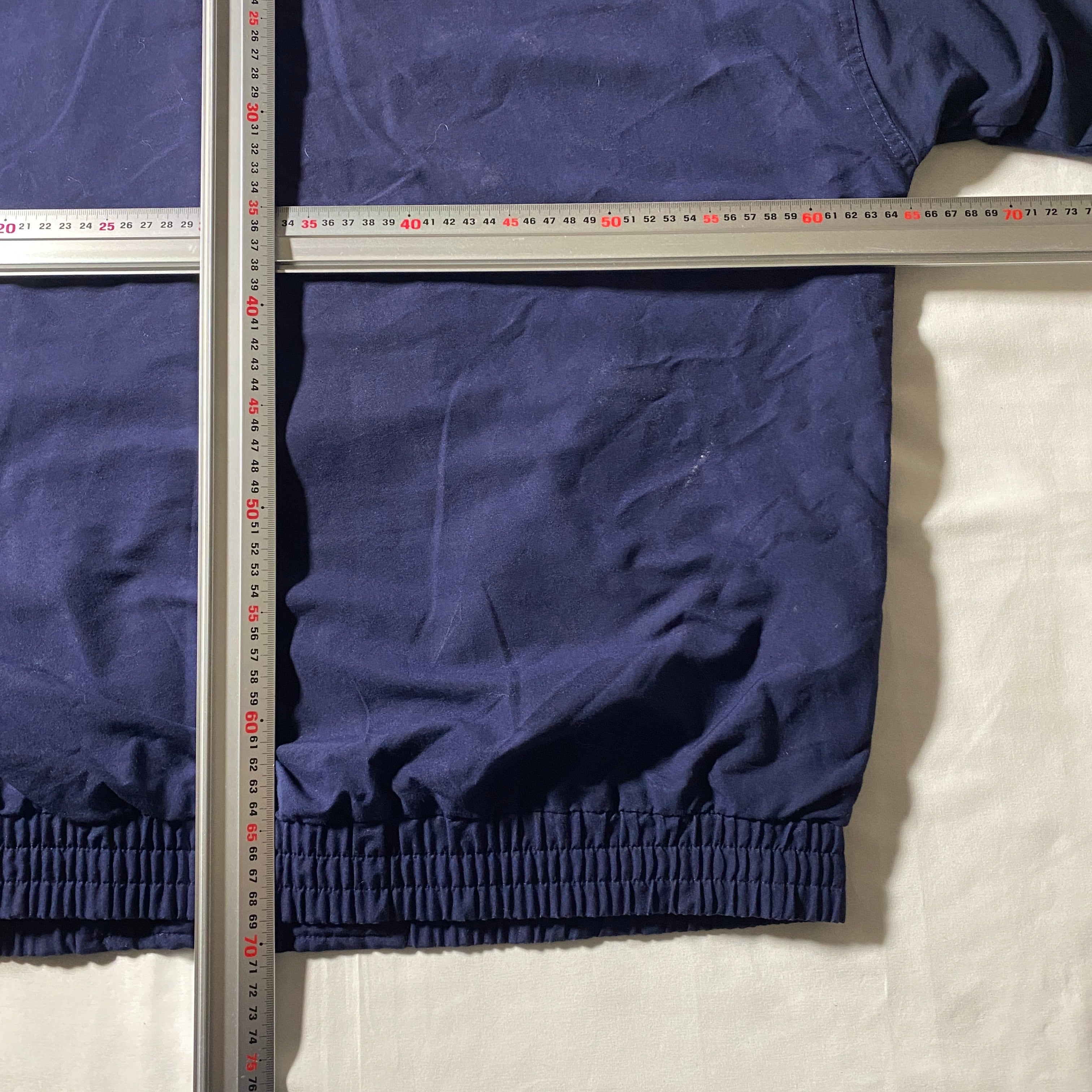 英国ロックを象徴するリアム・ギャラガーが着用していたモデルと同型で、シンプルながら圧倒的な存在感を放つ一着。軽量ながら裏地付きで快適な着心地。クラシックなスポーツウェアをストリートへ昇華した名品で、スタイリングに“90s UKロック”の空気感をさりげなく纏わせてくれます。大きめのサイジングなので重ね着もしやすく、ジャージとは異なるコットンのような質感が落ち着いた雰囲気となります。