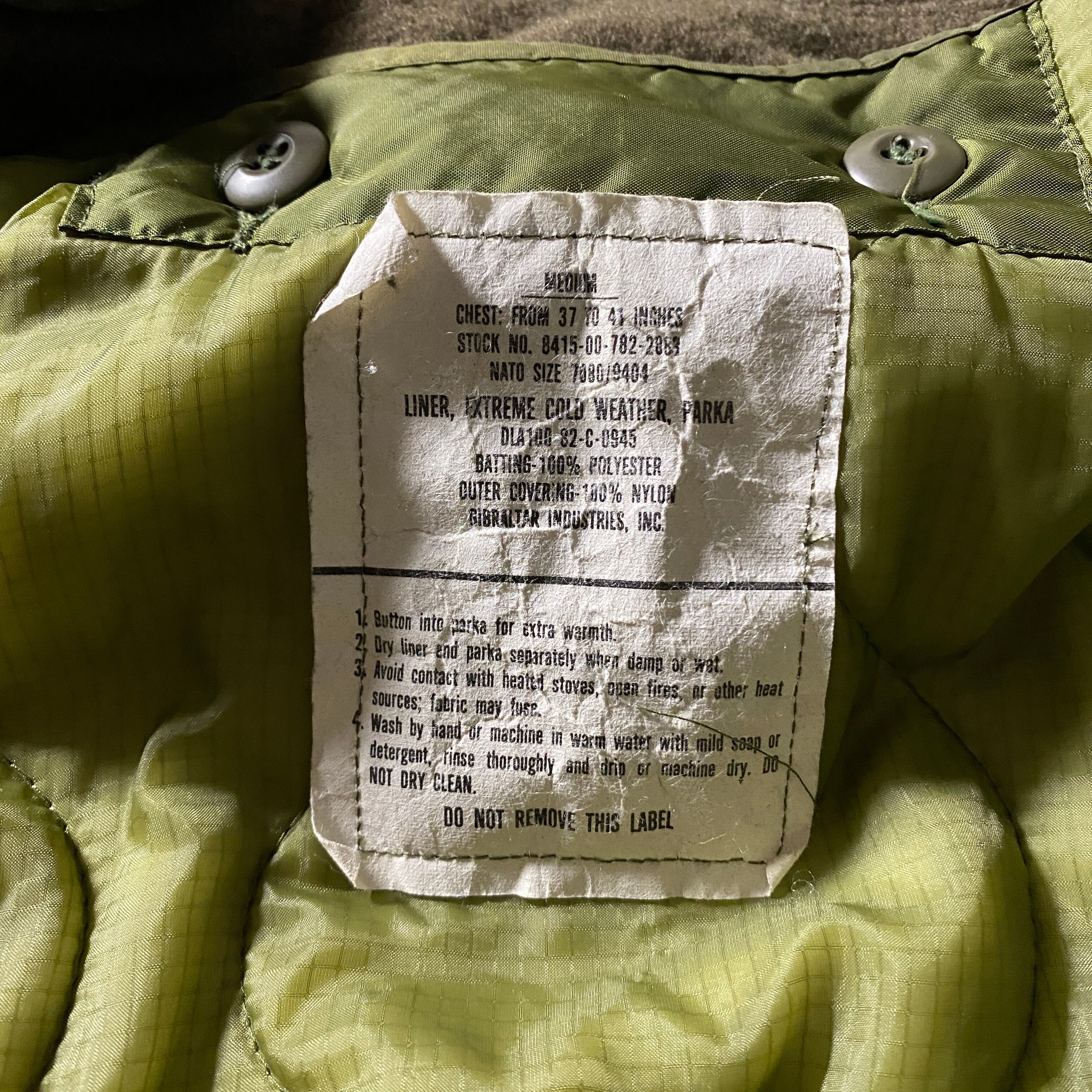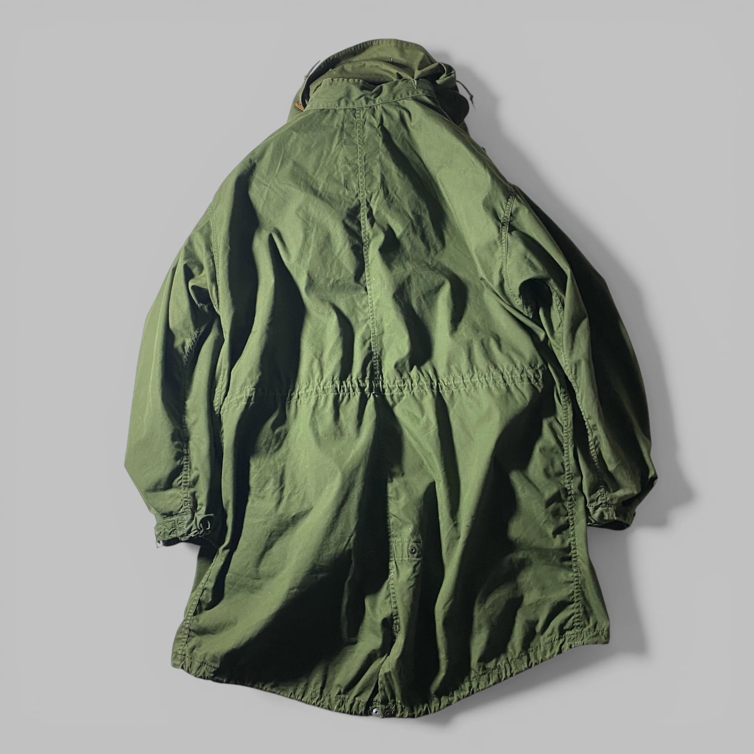 米軍の極寒地用装備として開発されたM-65フィッシュテールパーカー。こちらは1982年製シェルに同年製ライナー、1977年製フードが揃う実用的なフルセット構成です。モッズコートの原型として知られ、ベトナム戦争期以降の米軍を象徴するミリタリーアウターとして長く愛されてきたモデル。ゆったりとしたシルエットと長いフィッシュテールはレイヤードにも優れ、ライナー脱着で3シーズン着用可能。無骨なミリタリーの空気をまといながら街にも自然に溶け込む、完成度の高い一着です。