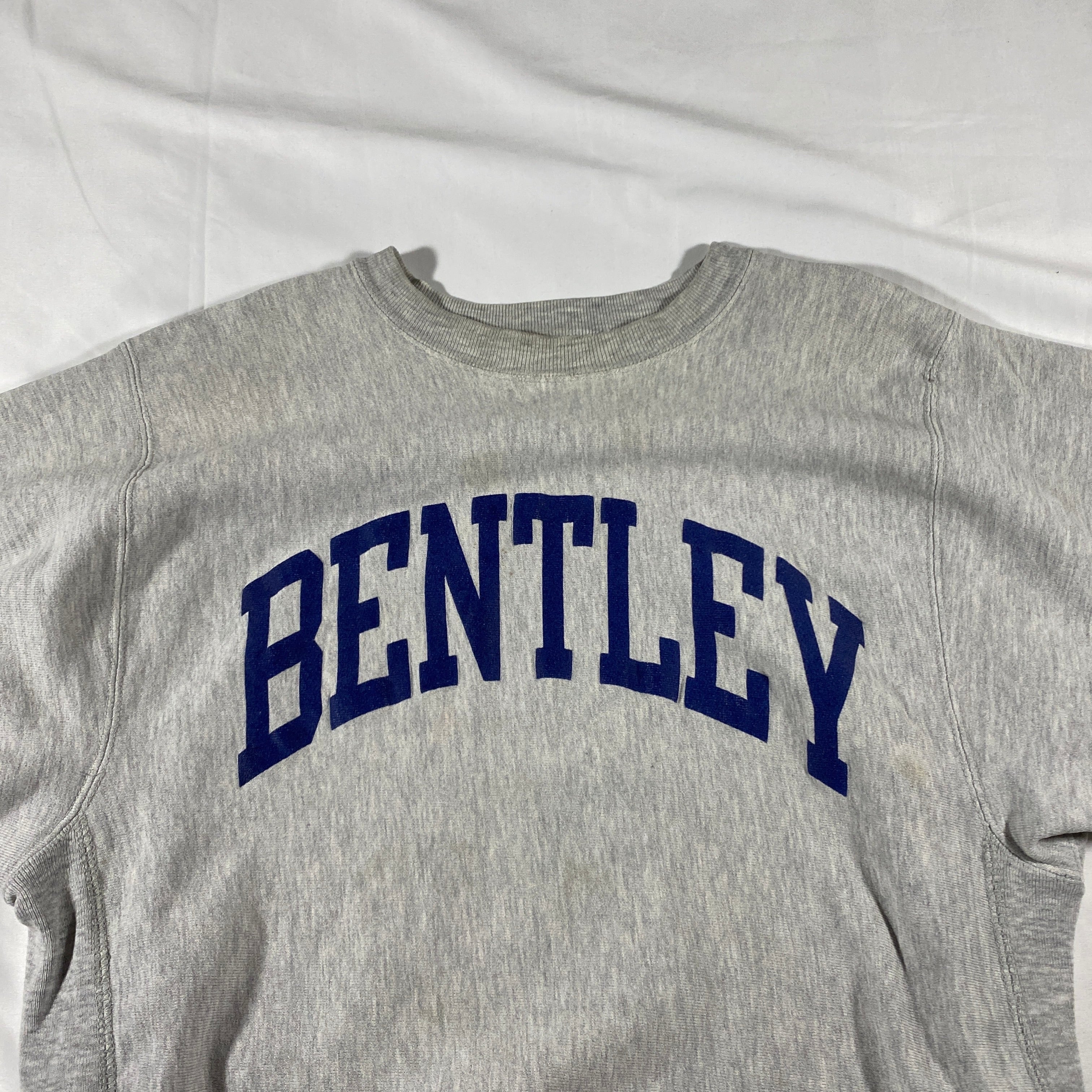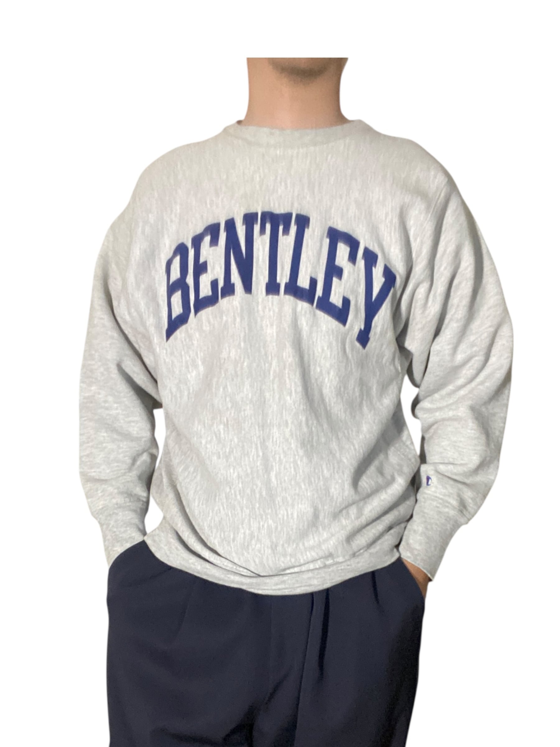 フロントに大きく入るBENTLEYが目を引く、80年代Championリバースウィーブのカレッジスウェット。霜降りグレーのボディに染み込みプリントを組み合わせた仕様は、着用と洗濯を重ねるごとに生地へ自然に馴染み、ラバープリントでは出せない奥行きある表情へ育っていくのが魅力です。さらにこの年代の染み込みプリント個体は年々見つかりにくく、コレクター人気も高いポイント。王道のアーチロゴに希少性まで備えた一着は、アメカジ好きのクローゼットに静かに効く“通好み”の存在です。