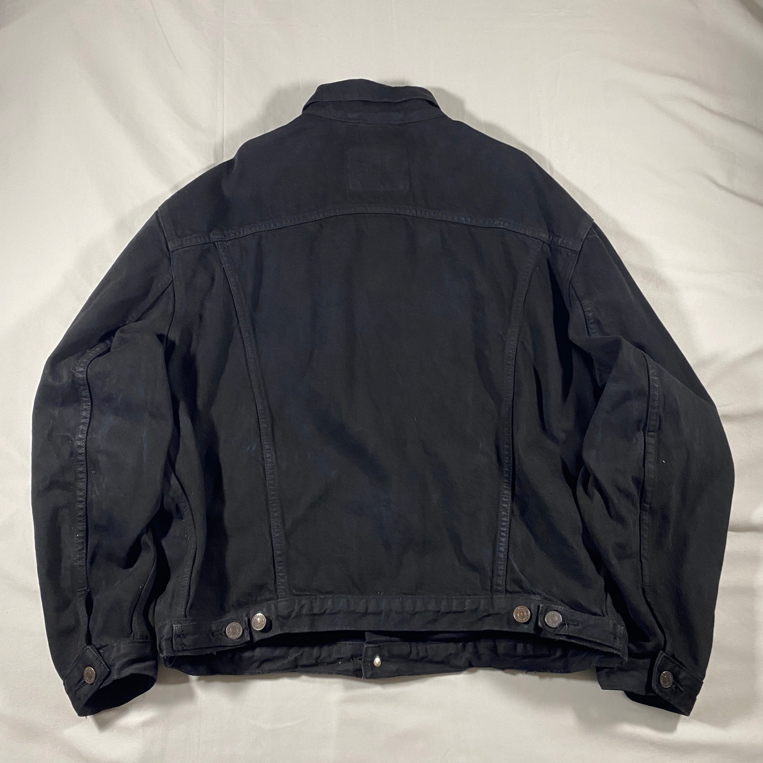 Levi’sの定番トラッカージャケットをブラックデニムで仕立てた一着。胸のフラップポケットやV字の切り替え、赤タブといったアイコニックなディテールは1960年代に完成したType IIIの系譜をしっかり受け継ぐ王道デザインです。ブラックデニムは着込むほどグレーにフェードしていくのが魅力で、この個体も程よく色が抜けてスミクロのような雰囲気に育っています。ジーンズ文化の歴史を背負ったブランドだけあって説得力は抜群で、Tシャツの上に羽織るだけでも様になる安心感はさすがの一言。デニム界のレジェンドが作る“とりあえずこれ着とけば間違いないジャケット”です。