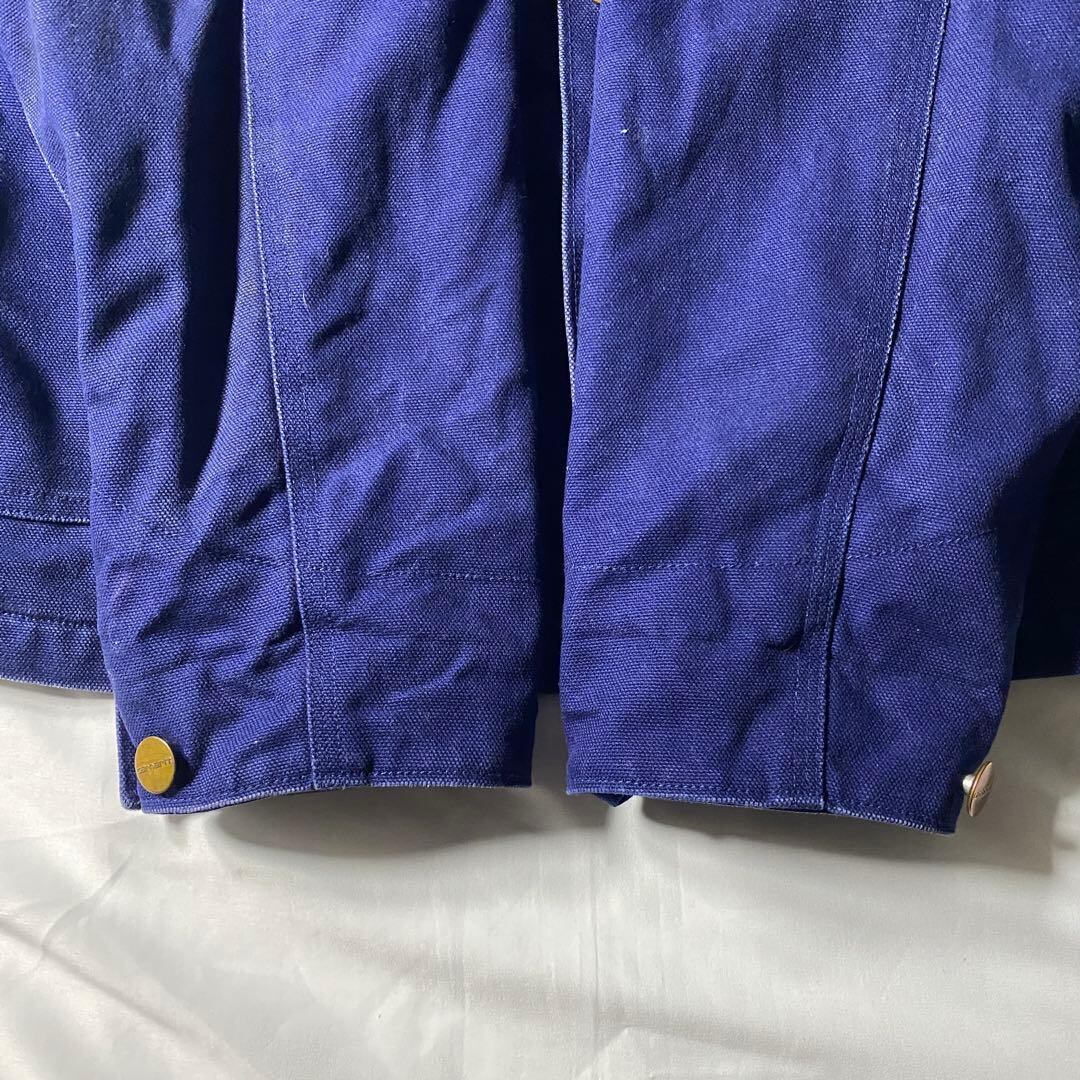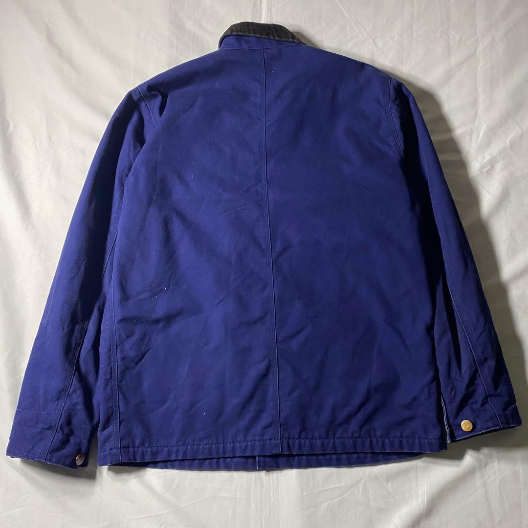 Carharttの定番ワークジャケットとして長年愛されてきたChore Coat。19世紀末のアメリカで鉄道員や農夫の作業着として生まれたワークウェアの王道モデルで、フロントの大きなパッチポケットとコーデュロイ襟が象徴的なディテールです。タフなダックコットンに裏地ブランケットライニングを備え、無骨さと実用性を両立。鮮やかなブルーカラーはヨーロッパのワークジャケットを思わせる雰囲気もあり、無骨なのにどこか洒落ている絶妙なバランス。作業着として生まれながら、今ではカフェでも古着屋でもしっくり馴染む、まさに“働き者の洒落者”な一着です。
