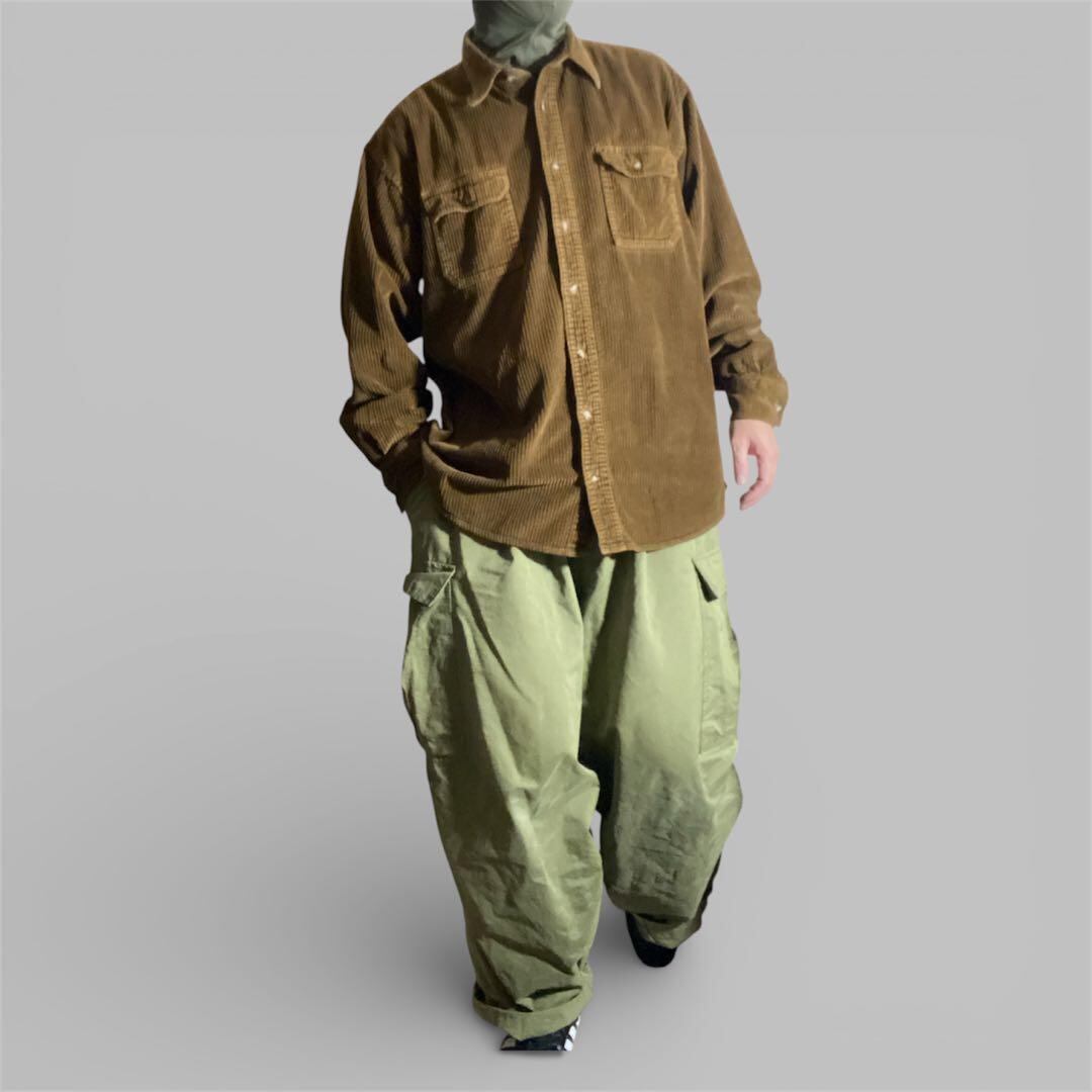 Cabela’s OUTfitter Seriesの一着。1961年創業のハンティングカルチャーを背景に持つブランドらしい無骨さと、太畝コーデュロイのクラシカルな存在感が魅力。XL Tallのゆとりある設計はバギーやワイドデニムと好相性で、シャツとしてもライトアウターとしても機能する万能型。街で着れば都会的アウトドア、山で着れば本気のギア。どちらに振っても成立する懐の深さがこのシャツの強みです。