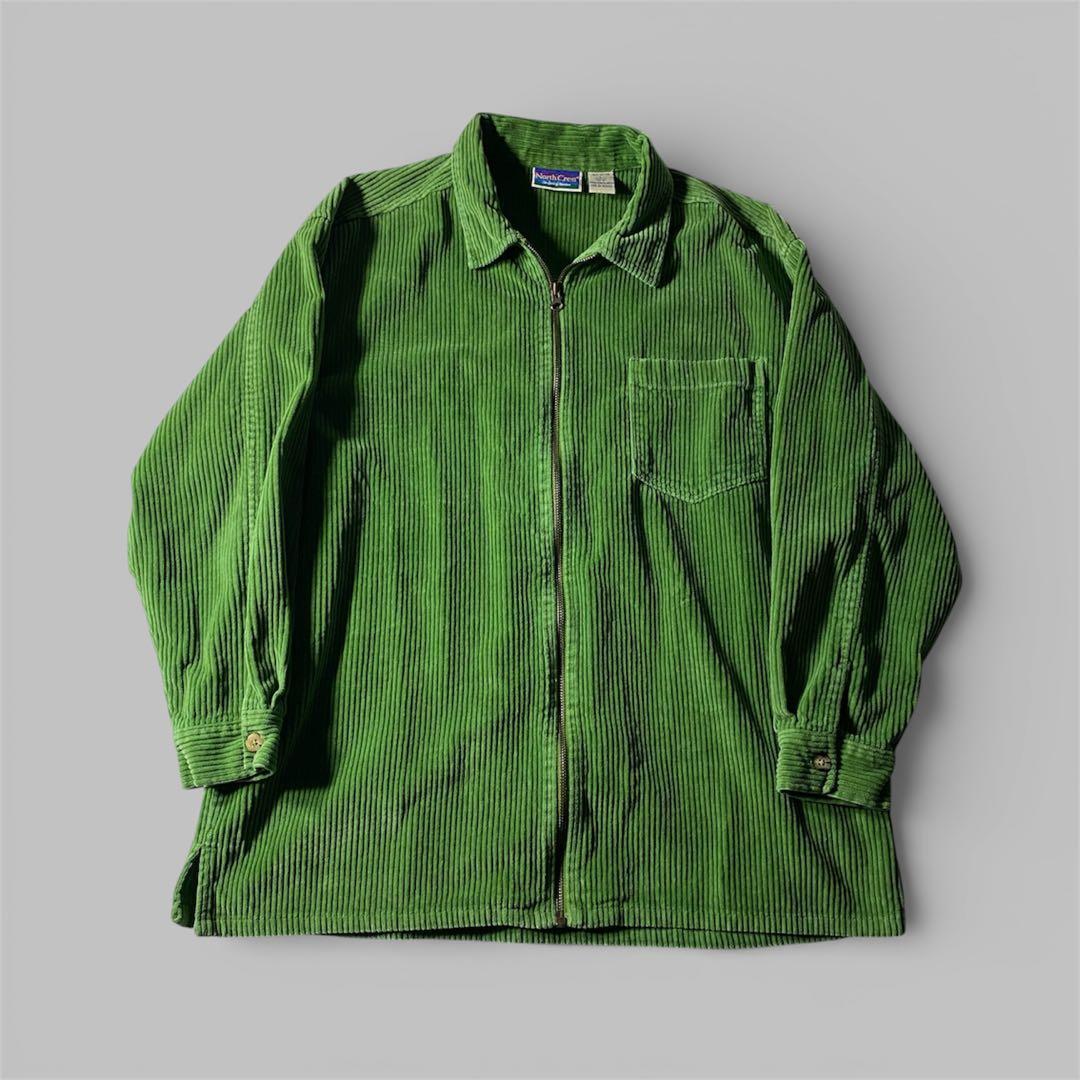 アメリカの量販ブランドNorthCrestによるコーデュロイ×フルジップという、日本ではあまり見かけない一着。背景には“ワークと日常の地続き”というアメリカ特有の文化があります。コーデュロイは本来ワークやアウトドア由来の耐久素材、そこに着脱のしやすいジッパーを掛け合わせることで、シャツでもジャケットでもない“羽織り”として成立させる発想。車社会での体温調整、スクールユニフォーム文化、DIYやガーデニングといった生活圏のリアリティが、この合理的デザインを生みました。発色の良いグリーンは芝生やフィールドを想起させ、デニムやチノはもちろん、ブラックパンツでモードに振っても成立。ボタンシャツの延長ではなく、いなたいライトアウターとして楽しみたいアメリカ的ハイブリッドピースです。