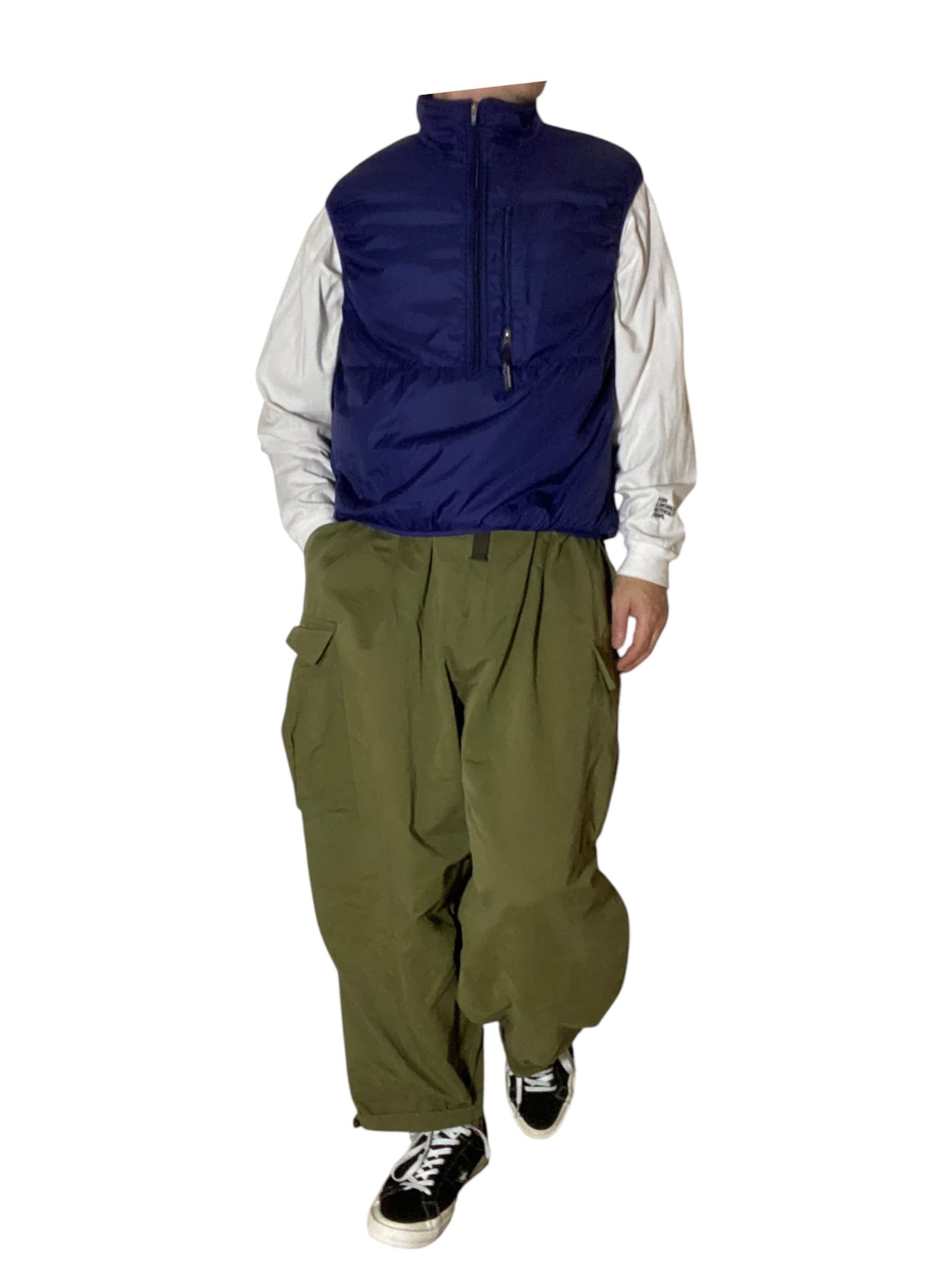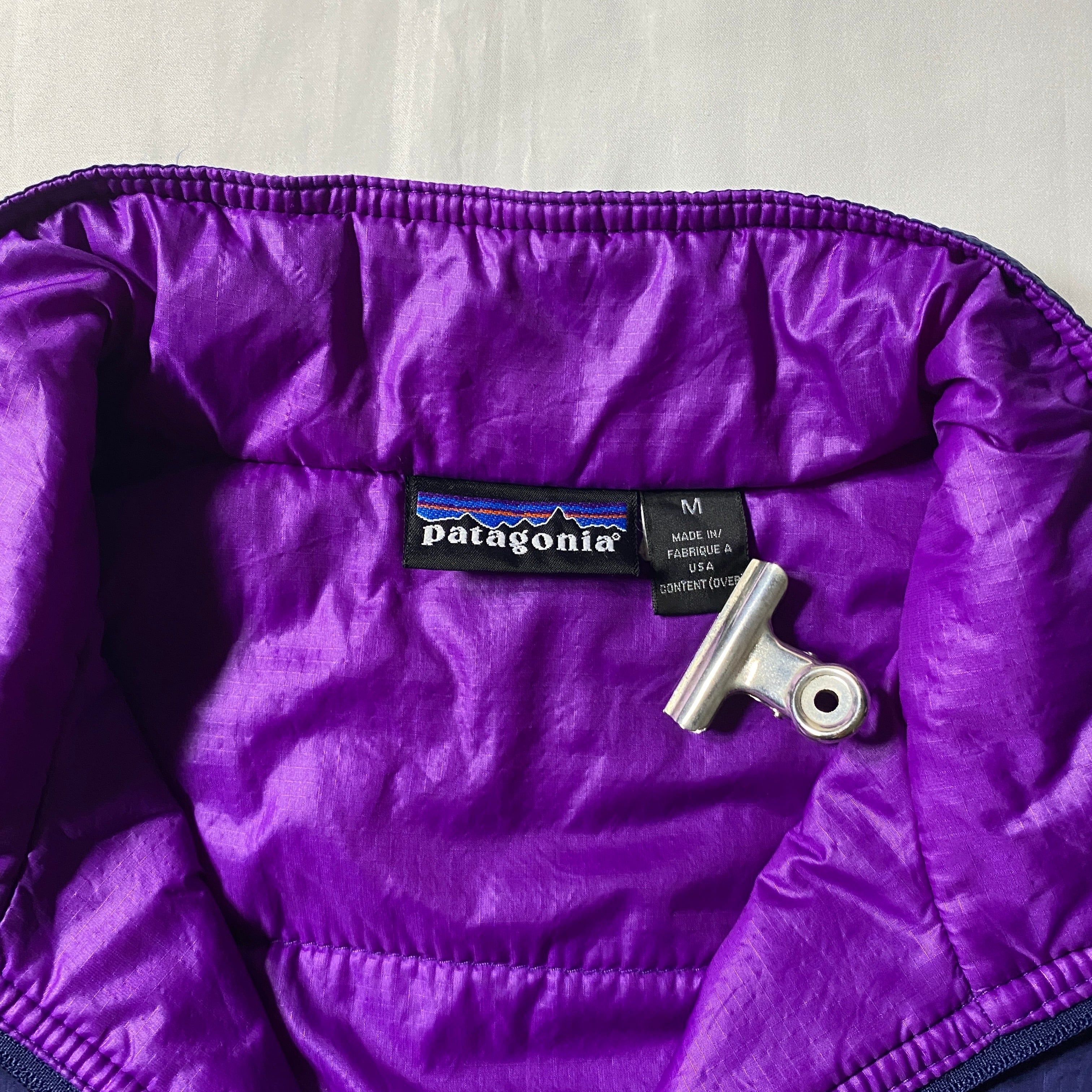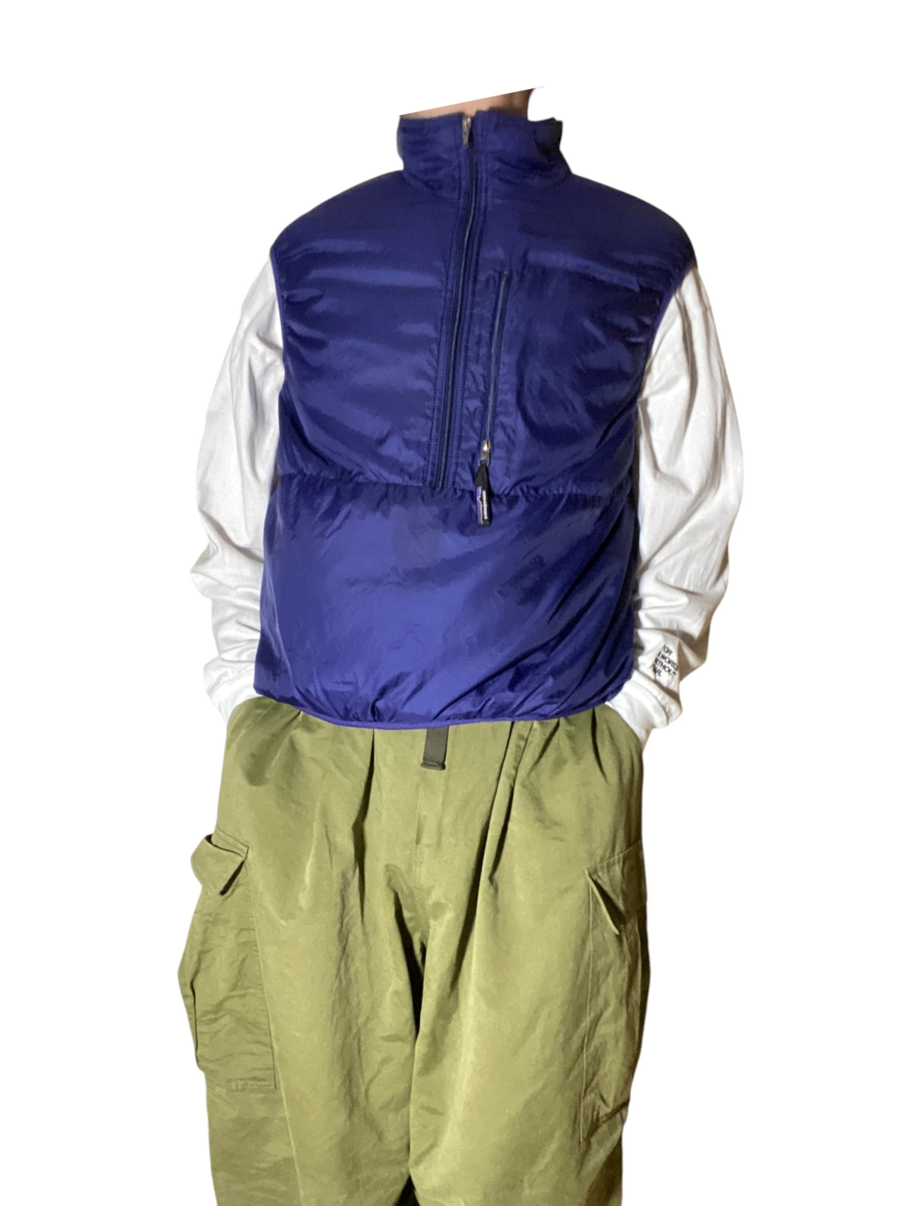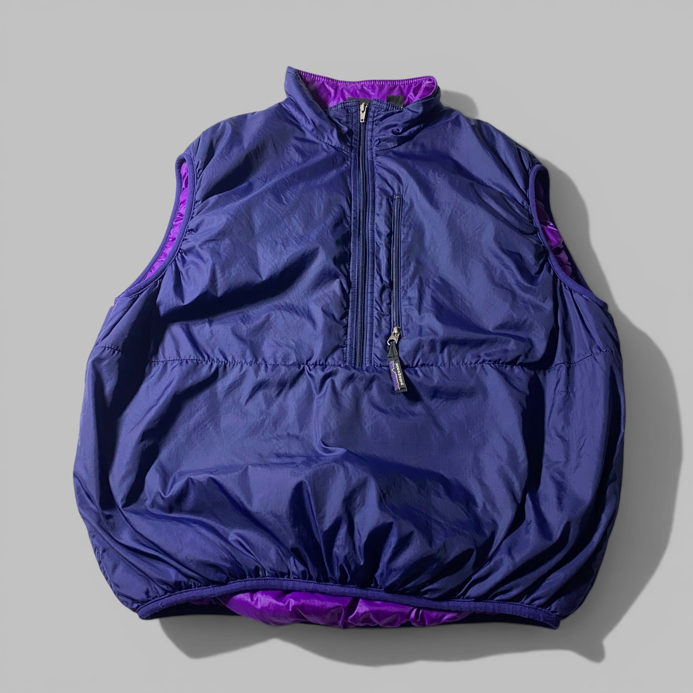 1995年製パタゴニアの名作パフボールベストは、軽量で保温性に優れたシンセティックインサレーションを採用した当時のハイテクアウトドアウェアの象徴的存在。シンプルな無地デザインながら、発色の良いパープルと裏地のコントラストが90年代らしい遊び心を演出します。クライミングやトレッキングのために生まれた機能美は、街に降りてもそのまま通用。気温の読めない日でも「とりあえずこれ羽織っとけ」と頼れる、アウトドア界の万能選手です。