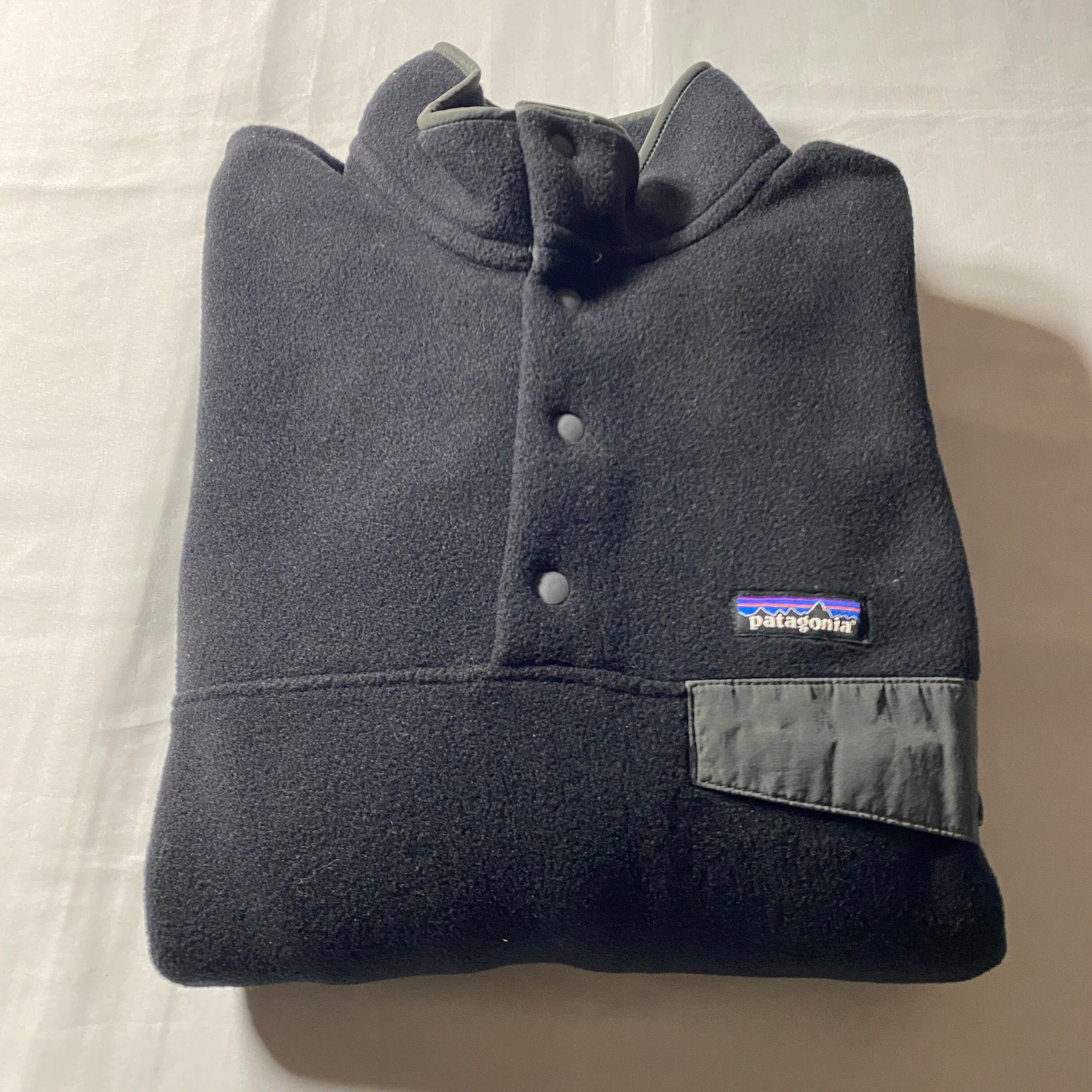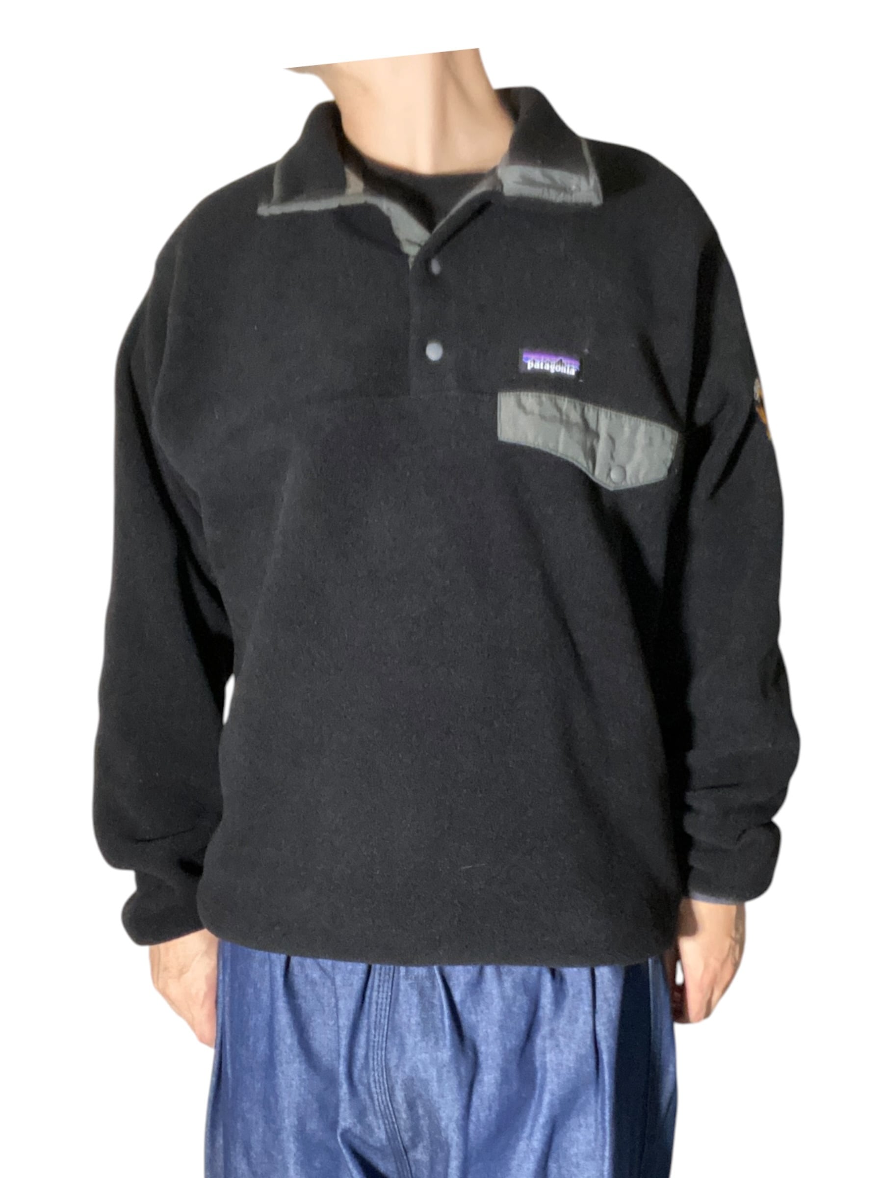 袖のワッペンが強烈な個性を放つシンチラスナップT。アウトドアの王道フリースに企業カスタムが乗ることで一気にストーリー性が増し、ありきたりなブラックとは一線を画す一着に昇華されています。軽く暖かい定番のポリエステルフリースは街着にも最適で、無地に飽きた頃にちょうどいい“クセ”。さりげないパタゴニアロゴと大胆な袖デザインのギャップが、スタイリングに遊びを効かせてくれます。