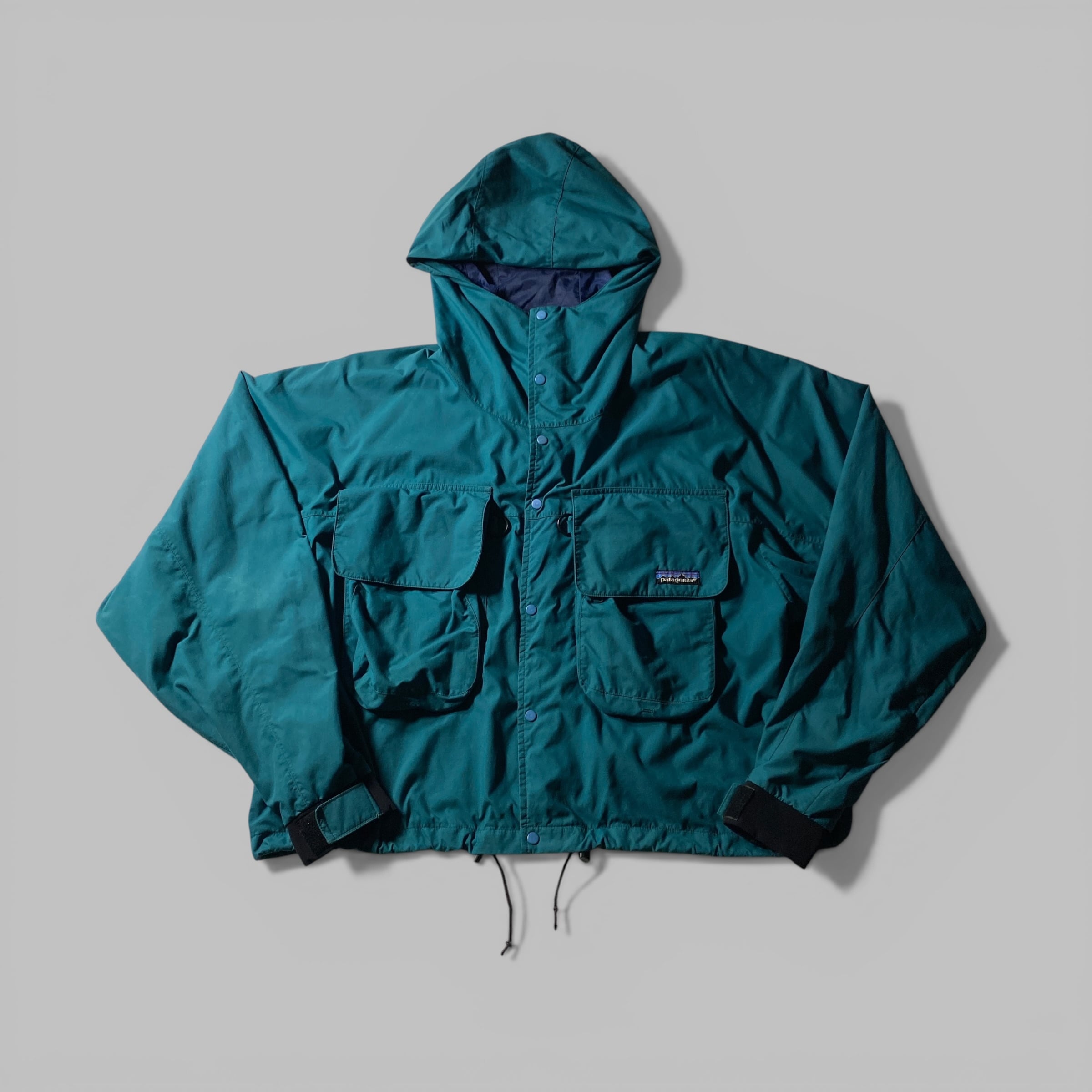 パタゴニアが誇るフィッシングラインの名作SSTジャケット初期モデル。水辺での実用性を極限まで追求したディテールは、街着としても異様な完成度を誇ります。防水膜は除去済のため軽快な着心地に変化し、逆にタウンユースでの扱いやすさが向上。ハンターグリーンの渋いカラーリングはアウトドアの背景を色濃く残しつつ、現代のスタイリングにも自然に溶け込みます。使い込まれた個体ならではの“リアルな説得力”が漂う一着です。