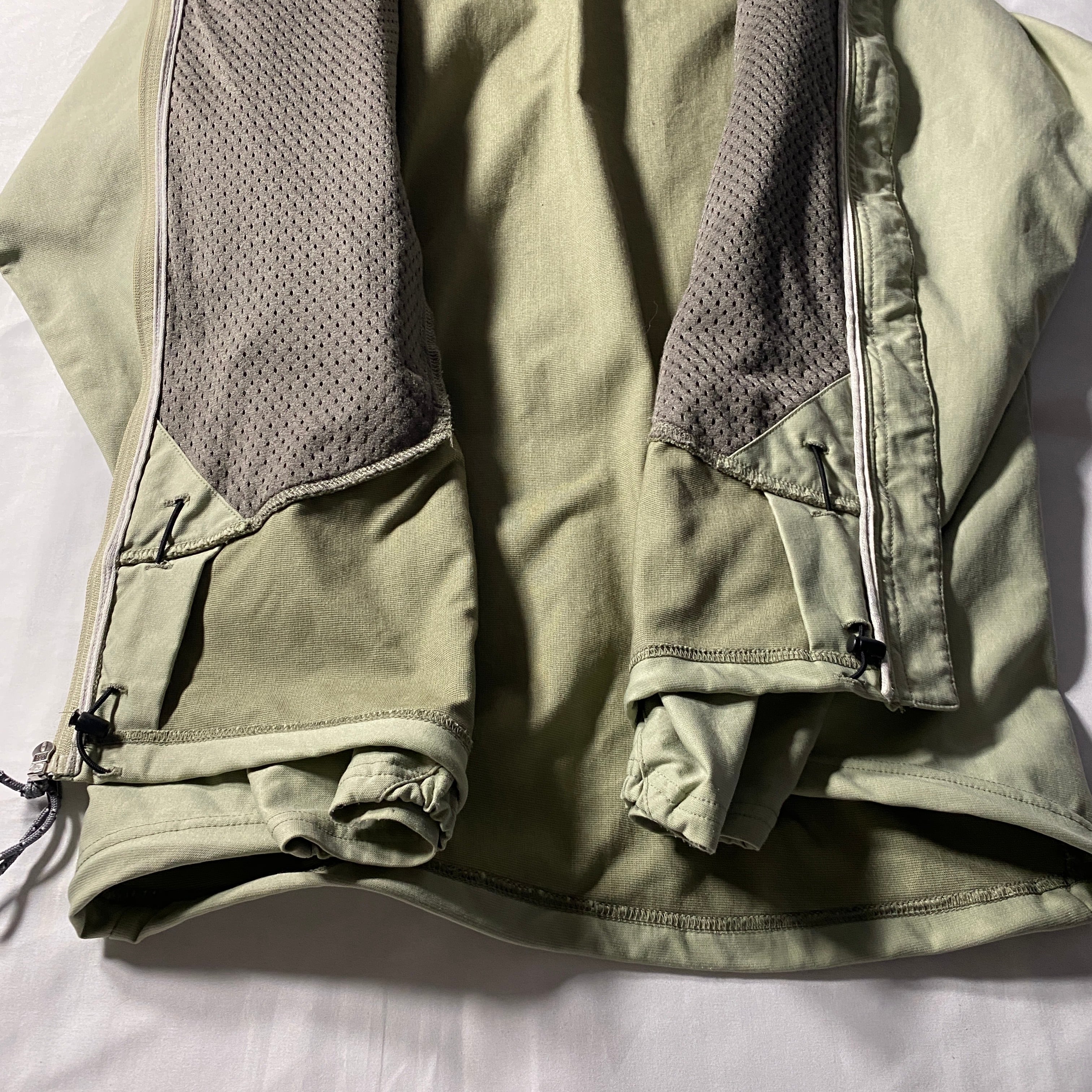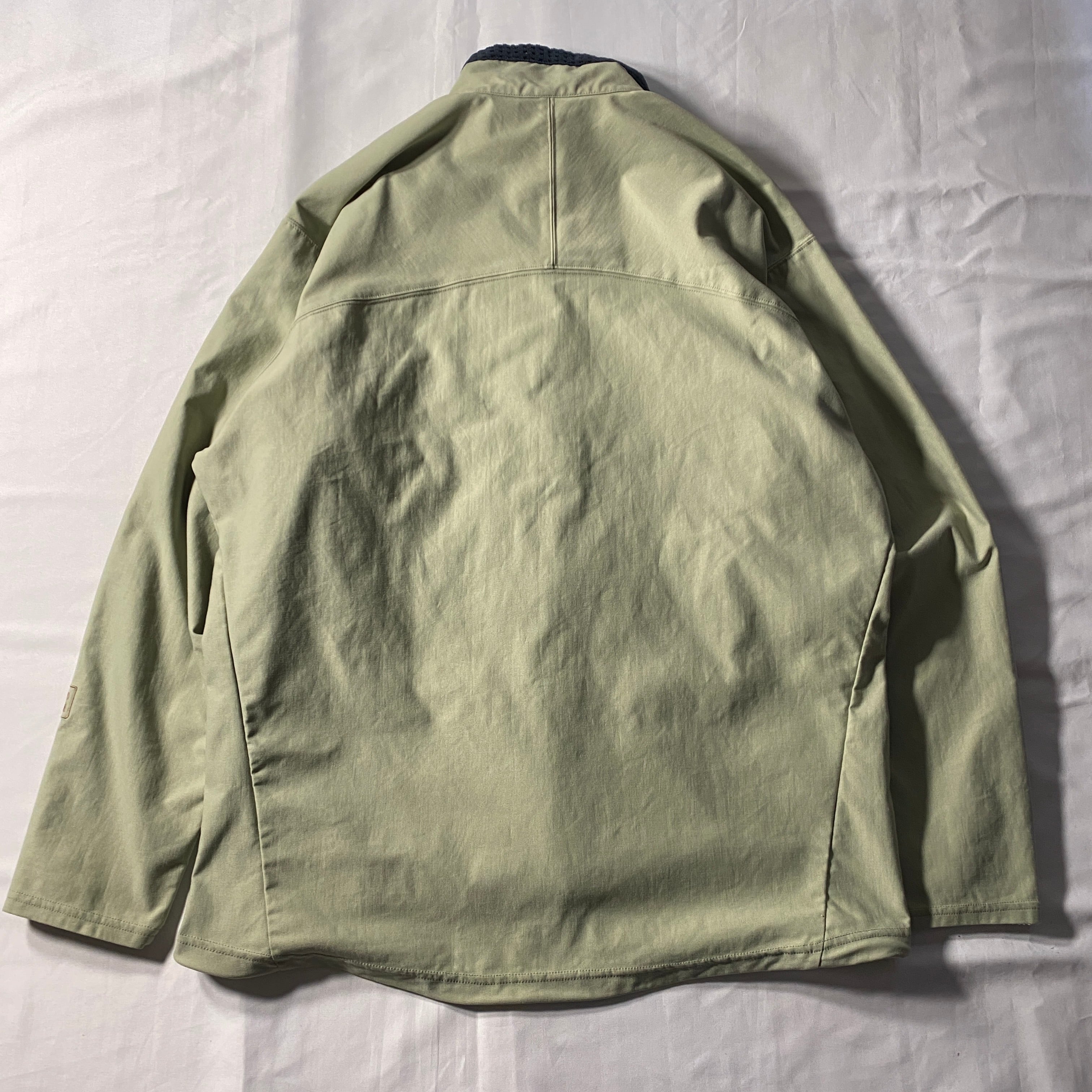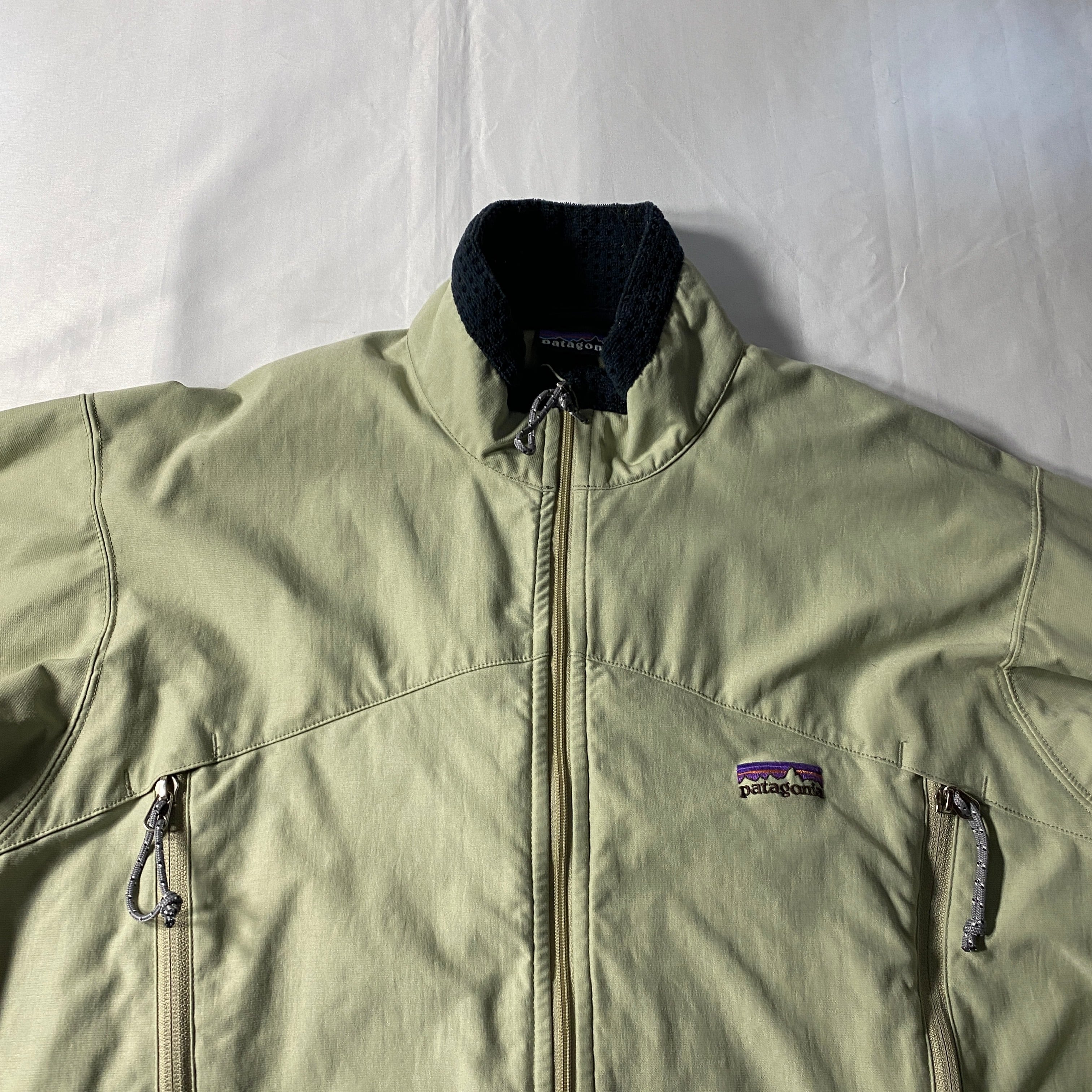 Patagoniaのスリングショットジャケットは2000年代初頭のテクニカル路線を象徴するモデルで、ストレッチ性のあるソフトシェル素材とミニマルな構造が特徴。風を受け流しつつ身体に沿う設計はクライミングやアクティブシーン由来で、都会で着ればそのままギア感がスタイルに昇華される一着。Marsラインでも採用されたモデルでインラインの中でも人気の淡いペールグリーンは当時らしいナチュラルトーンで、アウトドアと日常の境界線を軽やかに越えてくれます。