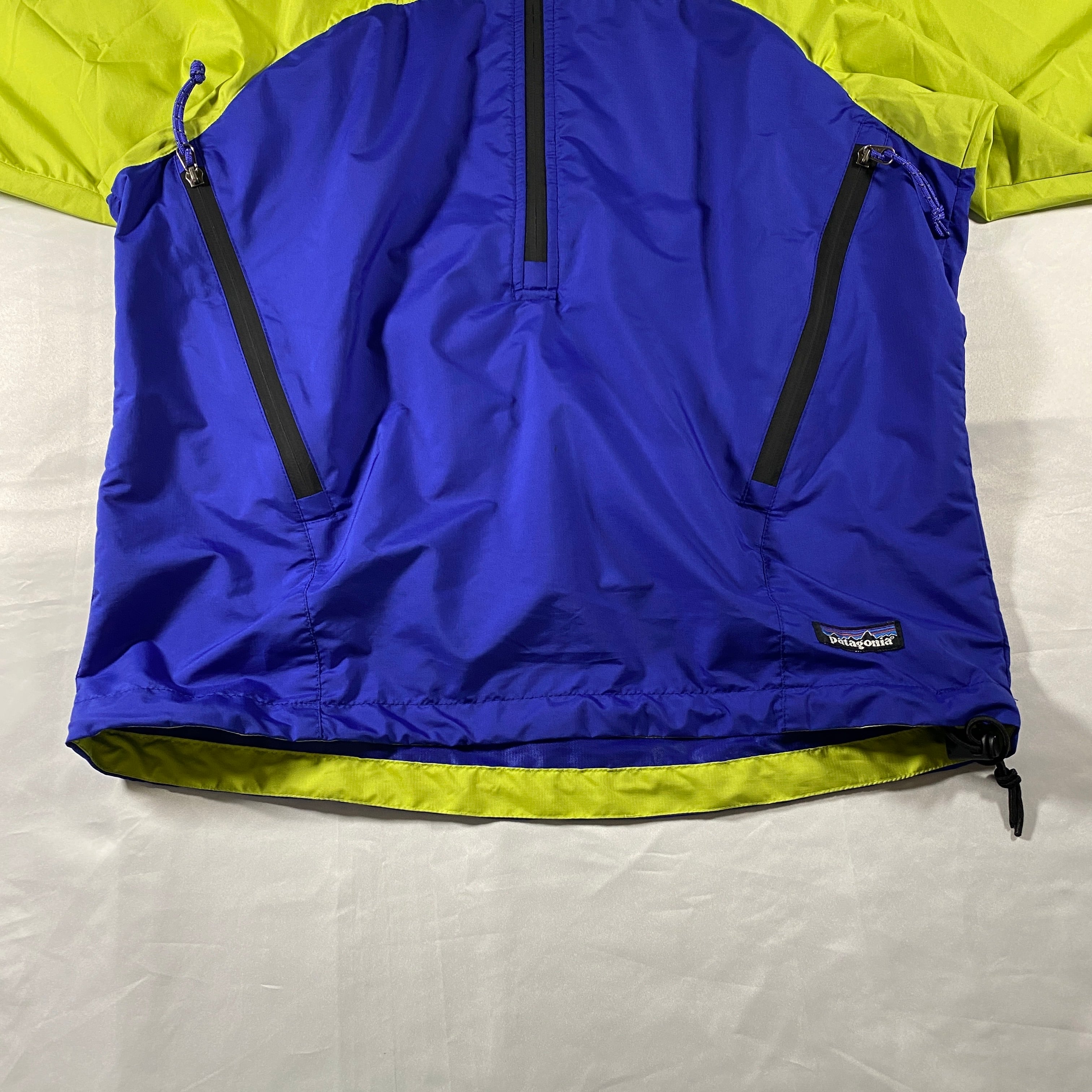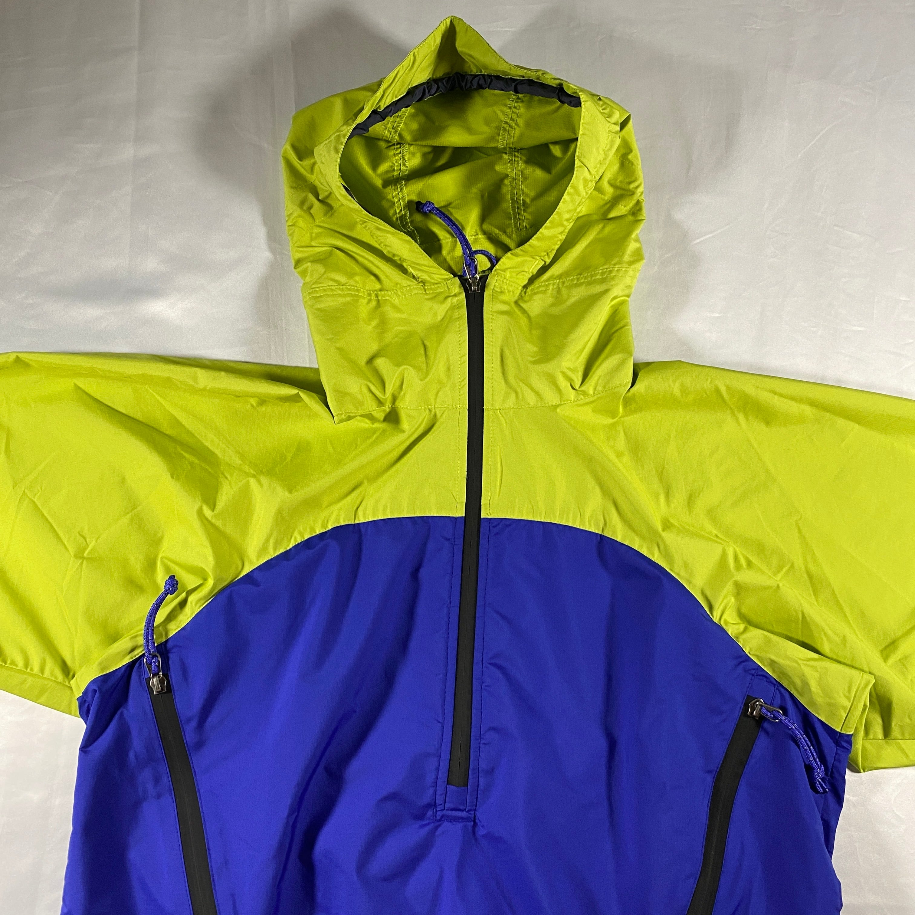 2000年代初頭のPatagoniaらしいテック感と配色センスが詰まったエッセンシャルプルオーバー。軽量ナイロンシェルにハーフジップ構造、立体的なポケット配置が特徴で、当時のアウトドアシーンの機能美をそのまま街着に落とし込んだ一着です。ライムグリーン×ブルーの切替は視認性とデザイン性を両立した90s〜00s特有のカラーリング。軽く羽織るだけでスタイリングに“ギア感”をプラスしてくれる、まさに名前通りの必需品です。