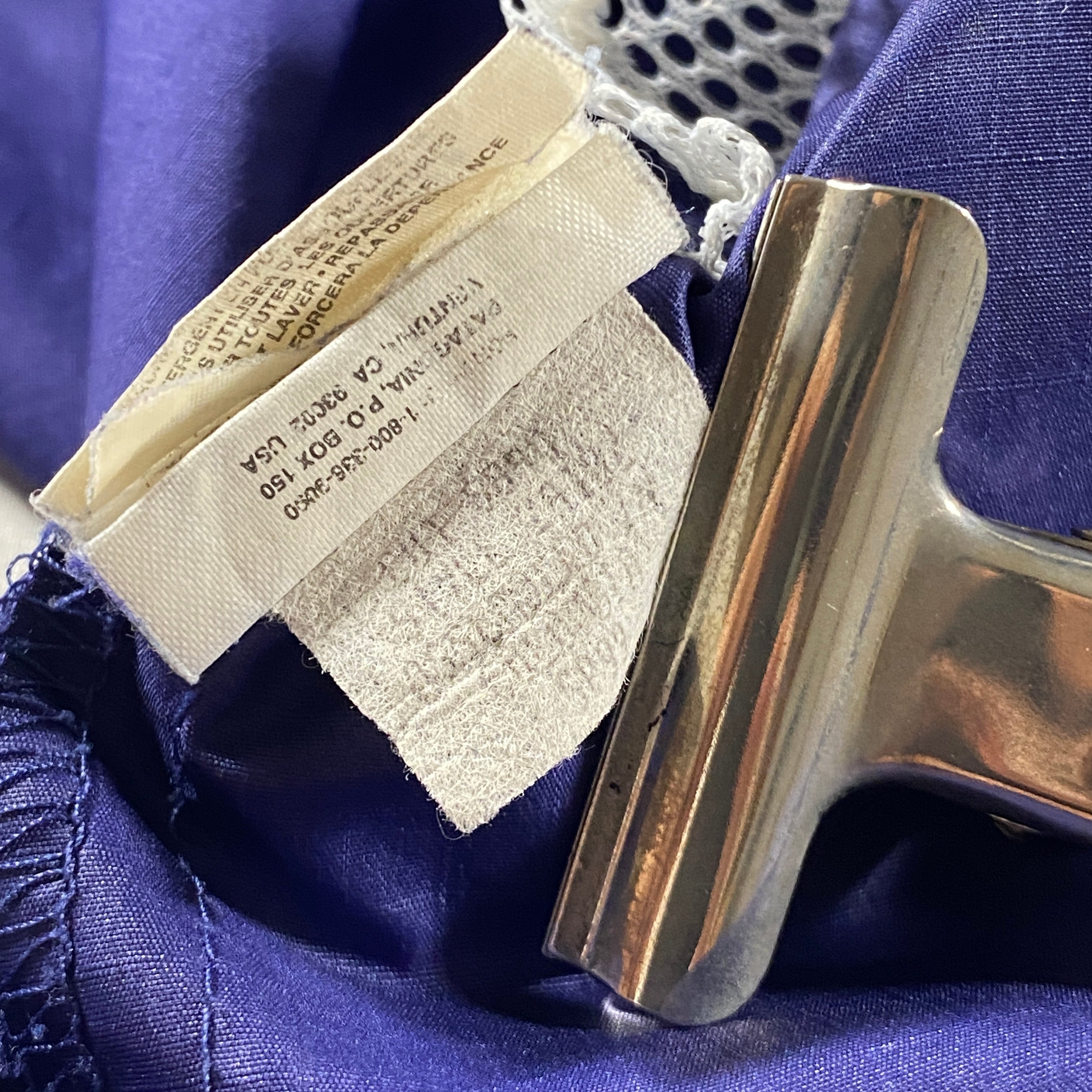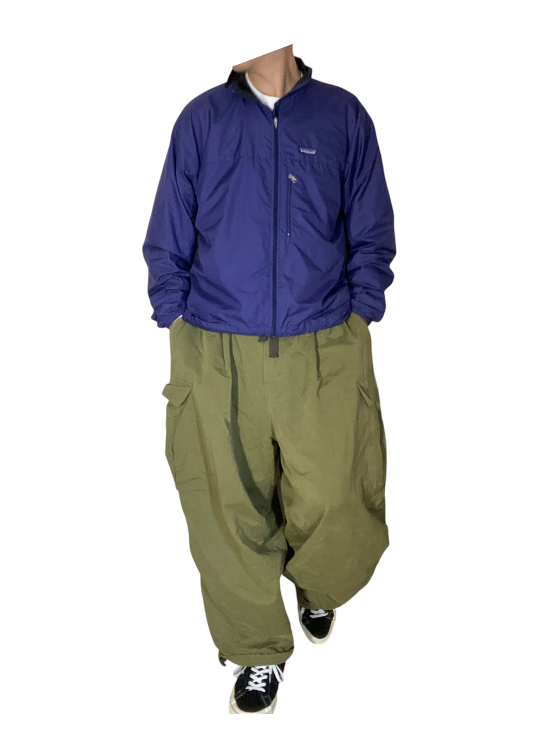90年代後期のPatagoniaらしいミニマルかつ機能的なデザインが光るベロシティジャケット。軽量ナイロンシェルにシンプルなフルジップ構造、胸ポケットのみの潔い設計は当時のクライミングやトレイル用途を背景にした“削ぎ落としの美学”。無駄を省いたシルエットは街着でも扱いやすく、深みのあるパープルは90sアウトドア特有のカラーセンスを体現。軽く羽織るだけでスタイリングに静かな説得力を与える一着です。